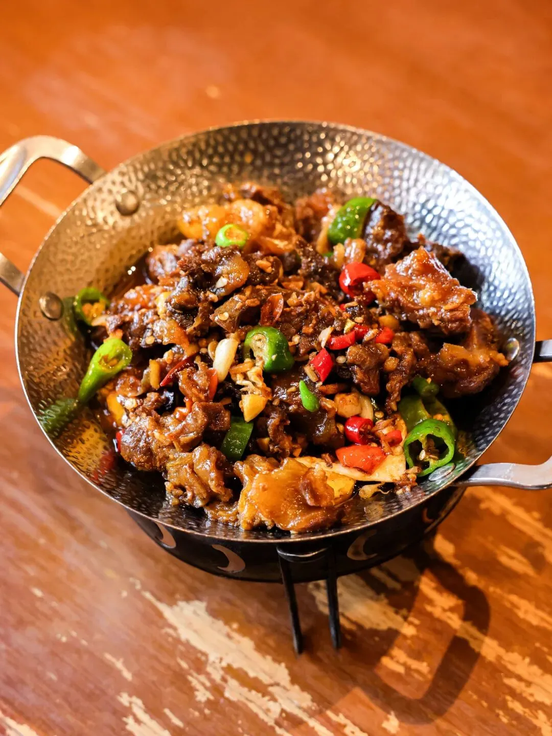 想点这道菜是因为路过隔壁桌的时候被香气迷得挪不开步😂牛腩其实处理得就是比较基础和接地气的版本,牛筋比肉更入味。酱汁走的是正常的咸香味,越吃我越觉得这像是席菜一般,调味重而不辣,也算好下饭。