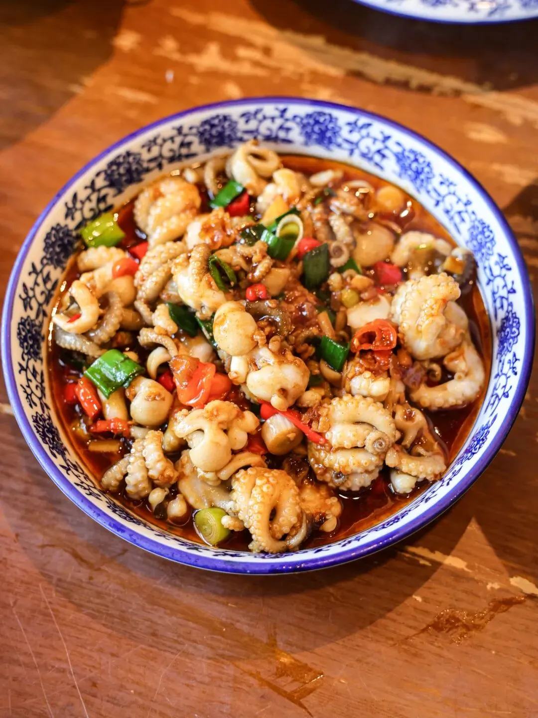 我一开始以为这是一道类似江浙的糟卤凉菜,那种带有白色或者黄汤的感觉,但端上来一份类似口味爆炒的八爪鱼,听朋友说原来是江西有时候炒菜也喜欢加一点酒糟提鲜。