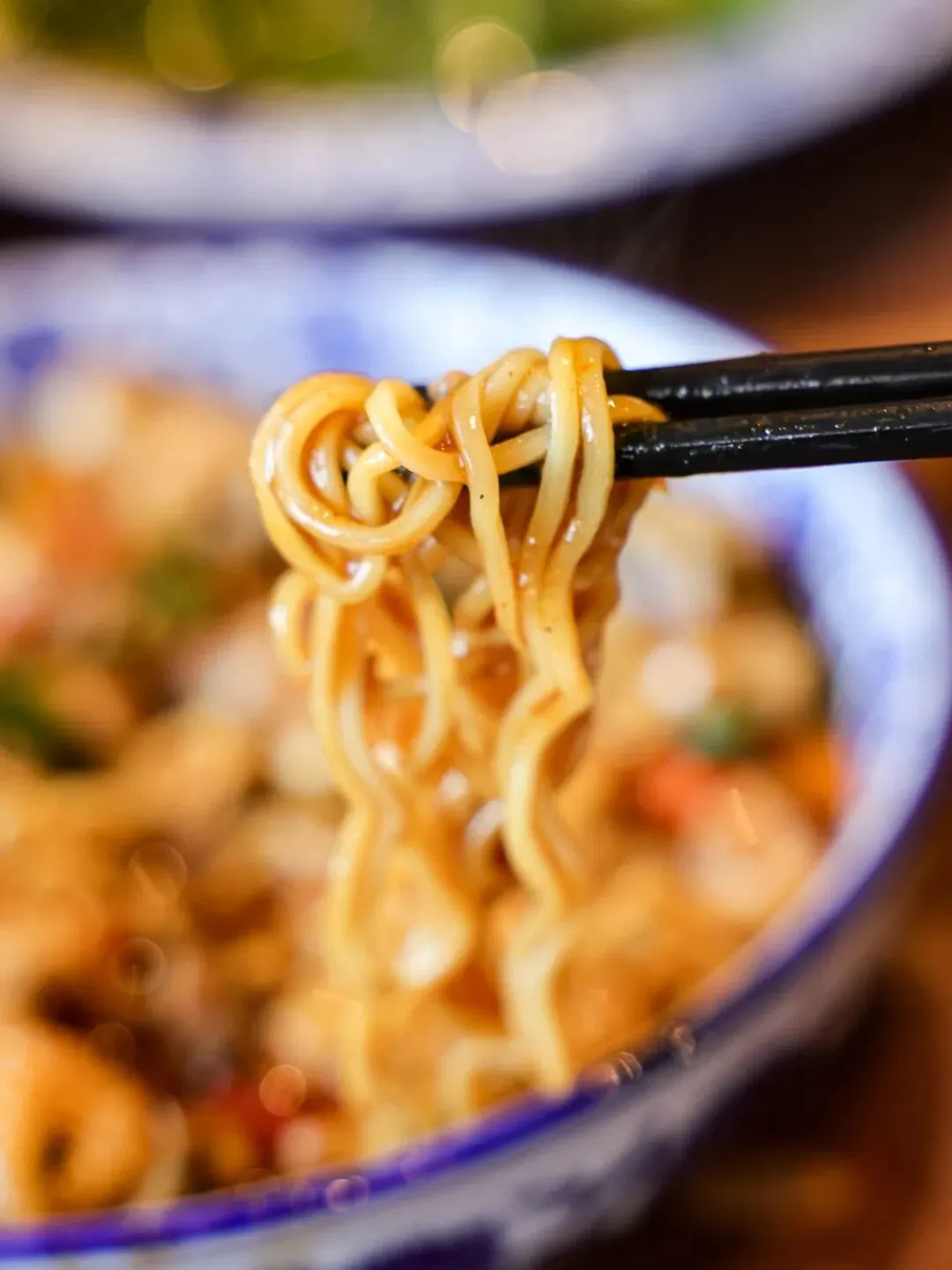 八爪鱼中间还埋了一筷子方便面,咸香感拉满了,这一口倒是会吃!