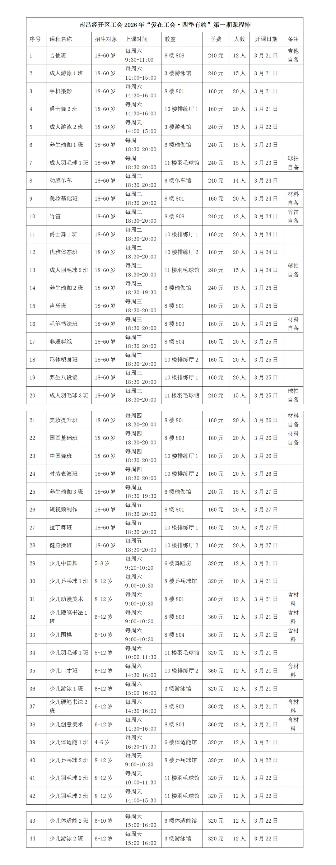南昌经开区工会“爱在工会·四季有约” 职工文化艺术体育培训班2026年第一期火爆来袭,快来抢课吧!