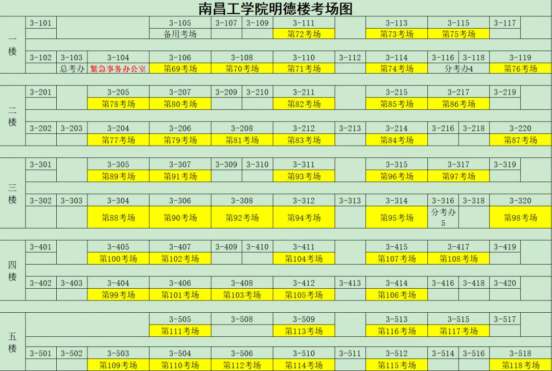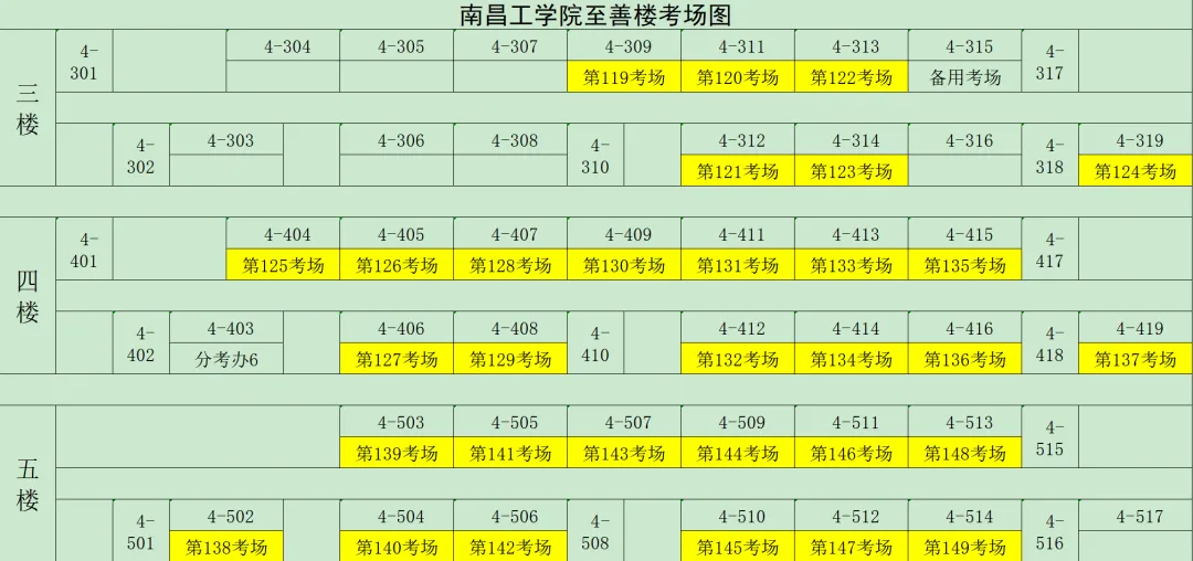 南昌工学院考点考场分布详见下图