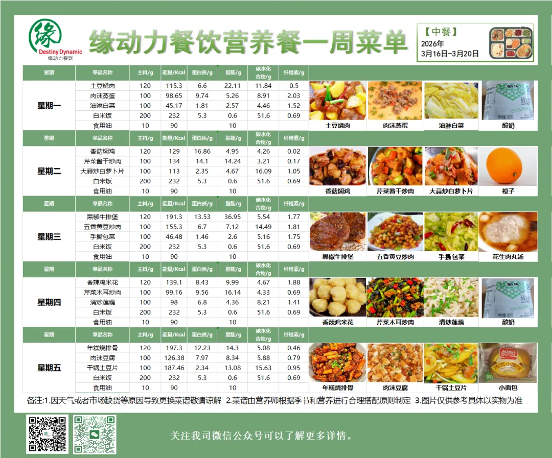 南昌县雄溪路小学3月16日-3月20日营养食谱来啦!