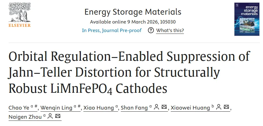 轨道调控抑制Jahn-Teller畸变以实现结构稳定的LiMnFePO4正极材料