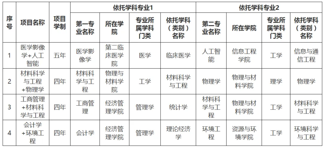 4个双学士学位复合型人才培养项目,涵盖医工交叉、理工融合等跨学科方向,将在2026年通过高考招生。