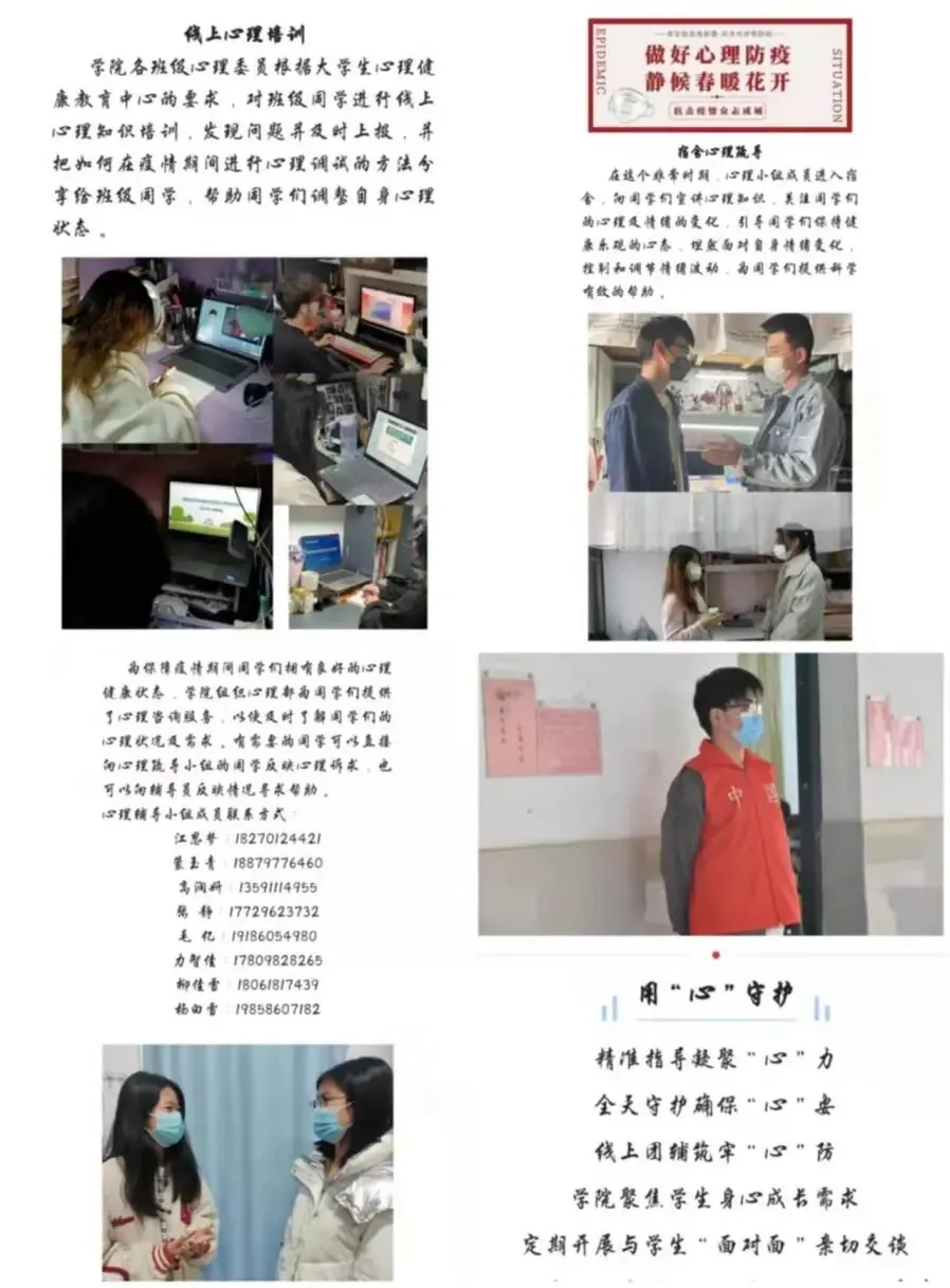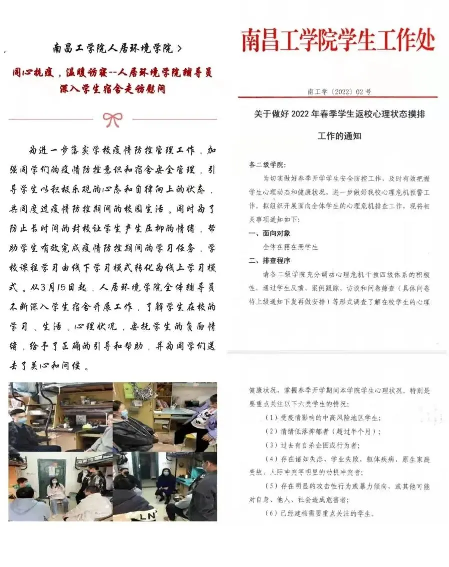 “疫”路同行,南昌工学院积极贯彻落实心理健康教育工作,坚决打好心理健康保卫战,为疫情防控提供坚实的心理保障,共同维护校园和谐稳定,倾情守护心灵家园。