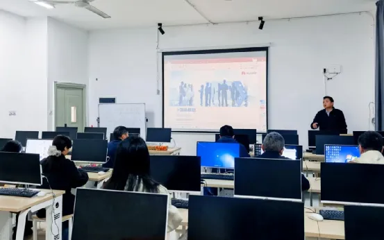 开班仪式上,史继峰发表致辞。他强调,华为HCIP-Datacom技术作为当前网络通信领域的核心技术,对推动信息技术专业人才培养、契合行业岗位需求具有重要意义。希望全体参训教师珍惜此次培训机会,静下心来钻研技术、交流学习,将所学知识与教学实践深度融合,不断更新教学理念、优化教学方法,切实提升自身专业素养和教学能力,为学院培养更多高素质技术技能人才奠定坚实基础。