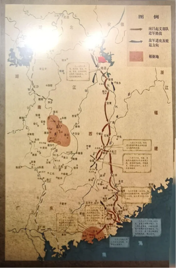 南昌起义部队南下广东路线图