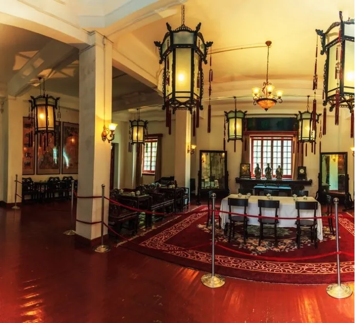 参观完纪念馆,走进不远处南昌起义总指挥旧址。旧址一楼是喜庆礼堂、营业部、账房、警卫室;二楼为周恩来同志25号住房、林伯渠办公室兼卧室及客房区;三楼是前敌委员会会议室、总指挥室;四楼为政宣办公区。