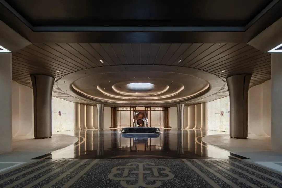 这个宝格丽盒子还有另一项功能,是通往下沉庭院会所的转换厅,融合得恰到好处,这是现在许多一线城市高端产品中会用到的手法。