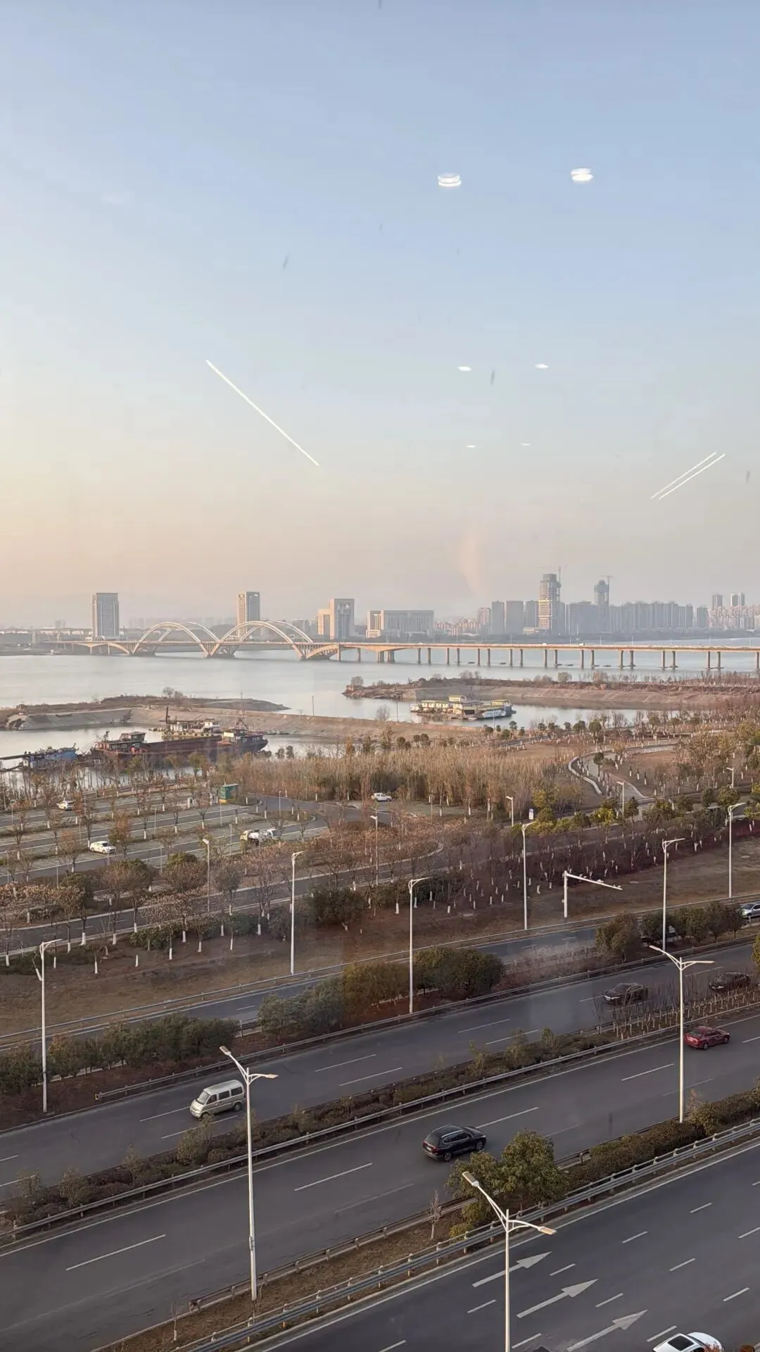 客厅往北看,江景视野非常开阔,江滩公园、红谷滩&朝阳的城市天际线,在眼前徐徐展开,270°的观江面,真的十分震撼。
