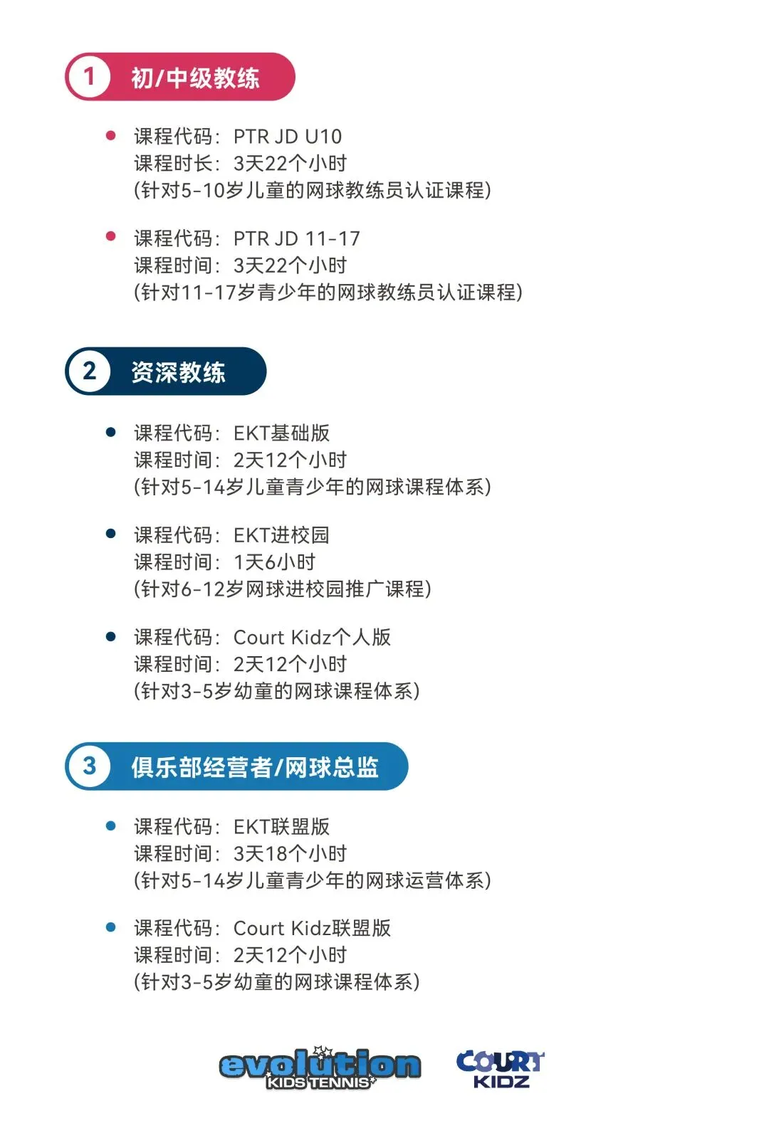 针对学员: 网球进校园的教练员,俱乐部教练员,在校大学生,适龄家长。