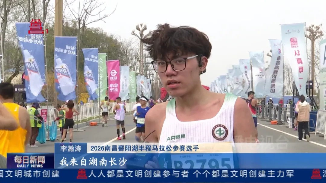 2026南昌鄱阳湖半程马拉松参赛选手、南昌高新区长跑协会副会长李欣钊:“对于我们跑步的爱好者来讲的话,能有这么好的一个环境,这么好的一个赛道,能够更好地融入到大自然,全民健身是对我们是一种福祉。”