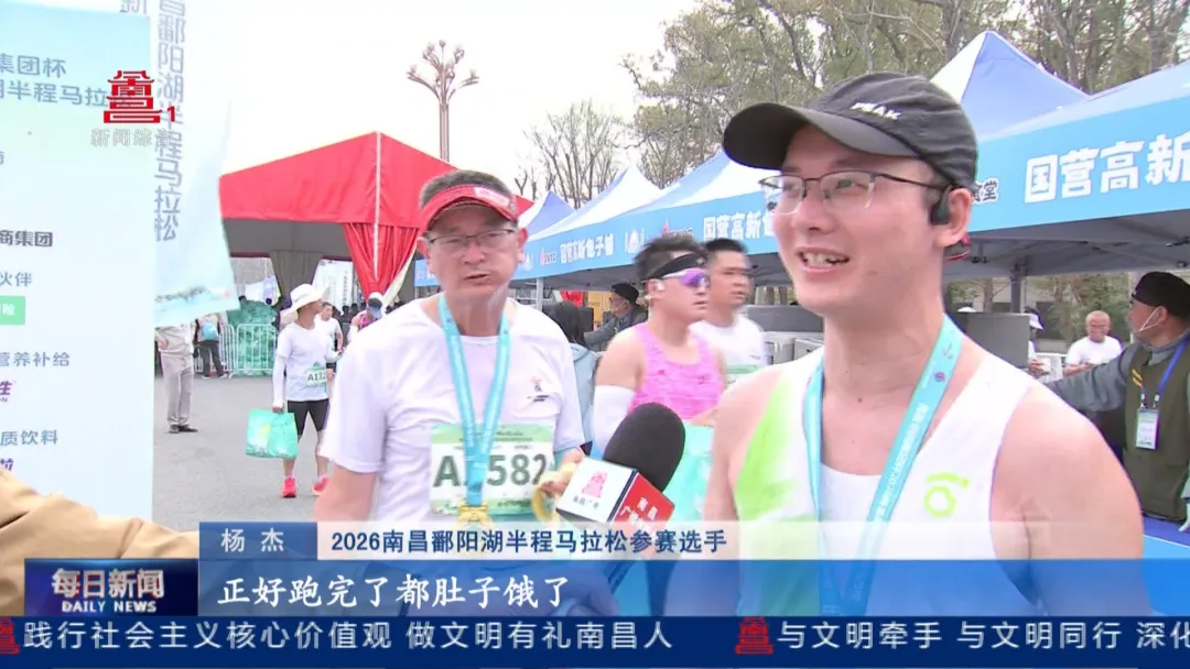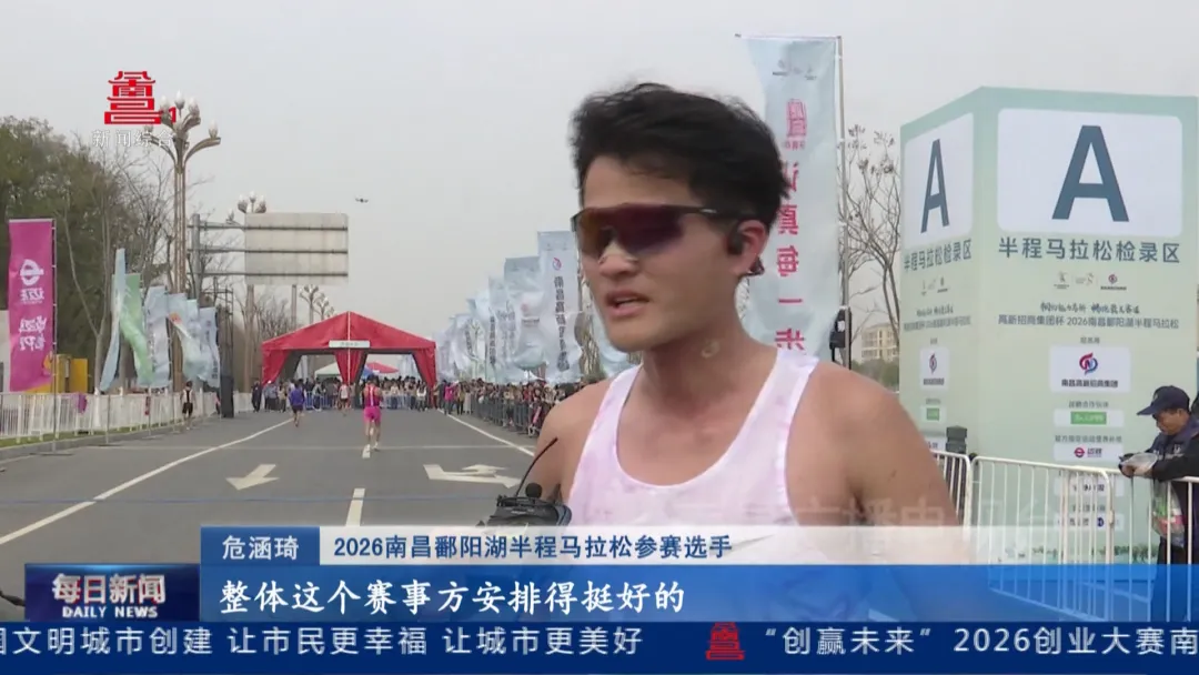 2026南昌鄱阳湖半程马拉松参赛选手危涵琦:“我来自福建三明的,这次马拉松感觉体验还是不错的,整体这个赛事方安排得挺好的,包括补给点,还有观众也非常热情,我们鄱阳湖真的是非常美,这边油菜花都开了,就感觉尽情地享受在花海里面,然后整个跑的体验是非常好的。下一届我一定还会来的,因为真的印象非常好。”