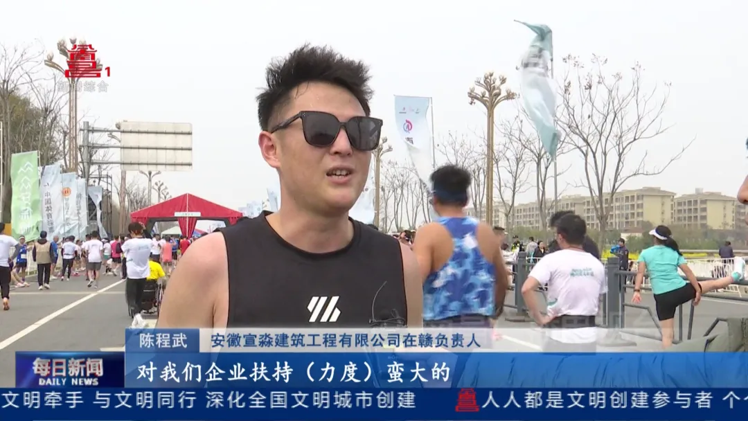 安徽宣淼建筑工程有限公司在赣负责人陈程武:“这是目前跑过的最美的赛道。南昌的经商环境(很好),对我们企业扶持(力度)蛮大的,明年的‘英才赛’我们肯定会来参加,而且还要动员我们全公司人一起来参加这场鄱阳湖半程马拉松。”