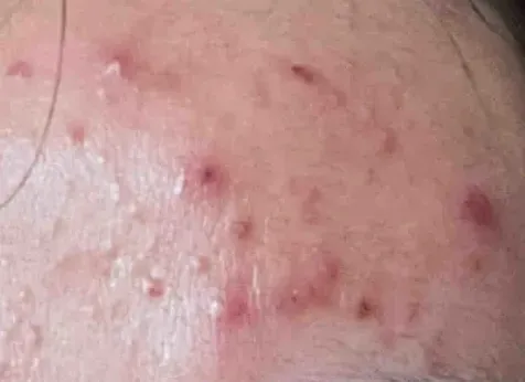 ❷ 持久性红斑:痤疮炎症会引起血管的扩张充血,从而导致持久性红斑,表现为面部出现大片的红色斑块。