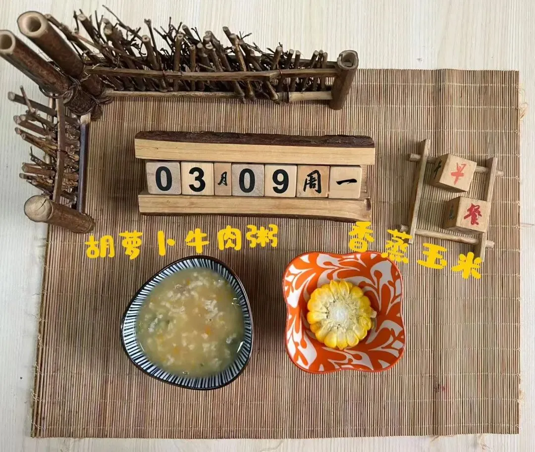 胡萝卜牛肉粥 、香蒸玉米