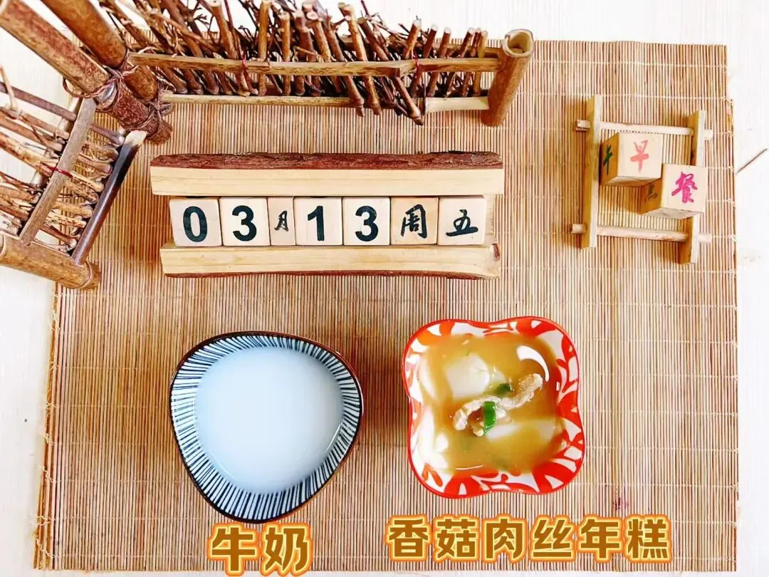 香菇肉丝年糕、牛奶