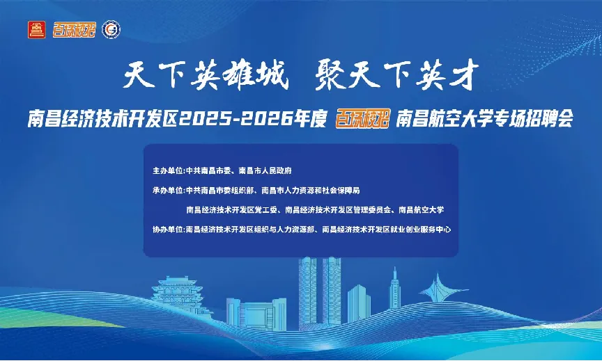 为深入贯彻落实国家就业优先战略、全面推进人才强区战略实施,助力本土优质企业吸纳高素质人才,依据《关于印发〈南昌市2025-2026年度吸引10万名大学生和技能人才来昌留昌创业就业工作实施方案》的通知》精神,经研究决定开展“南昌经济技术开发区2025-2026年度南昌航空大学专场双选会”,现诚邀南昌航空大学全体毕业生参与,共促人才与产业双向赋能、共赢发展。