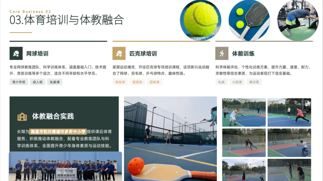 南昌市悦鼎体育是一家立足南昌、辐射赣鄱的综合性体育产业运营服务商,深耕体育产业多年,专注赛事运营、体育培训、产教融合、器材销售四大核心板块,致力于成为区域体育事业发展的重要推动力量。公司创始人、董事长张陈坤为南昌大学2010级体育专业校友。