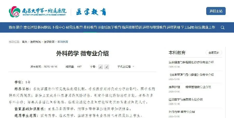 继吉林大学后,广州医科大学和南昌大学也于2025年开设了外科药学微专业。