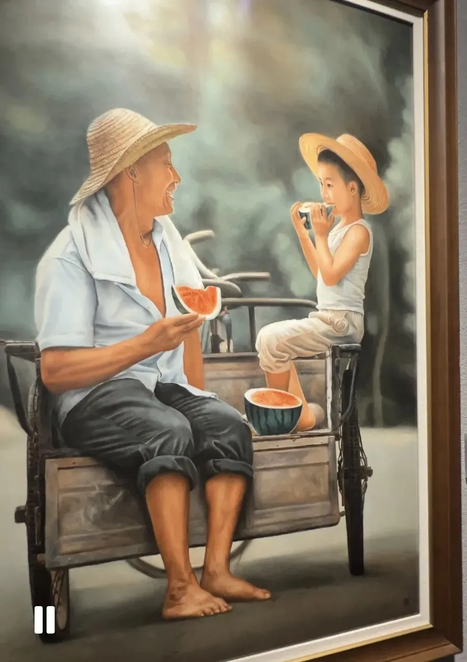 还有祖孙俩坐在三轮车上啃西瓜的场景,草帽、汗巾、红瓤西瓜,全是咱南昌夏天最熟悉的模样,阳光透过树叶洒下来,暖得人心里发甜;