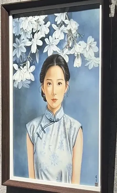 也有穿着旗袍、站在玉兰花下的女子,蓝底白花的旗袍衬得人温婉雅致,像从老照片里走出来的民国姑娘;