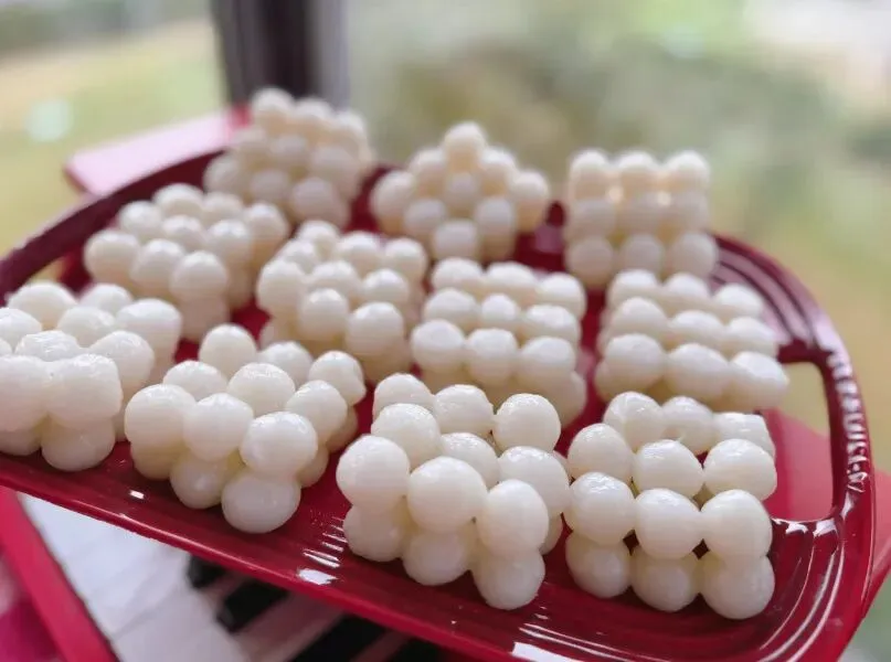 南昌人真会起名字,把一个个晶莹剔透的糯米圆子叫做“热罩子”,真是百思不得其解,看着和日本的三色豆乳丸子差不多,应该不是纯糯米做的,一个个捏着吃还挺有嚼劲,哏啾啾的。最重要没有那么甜,我很喜欢。