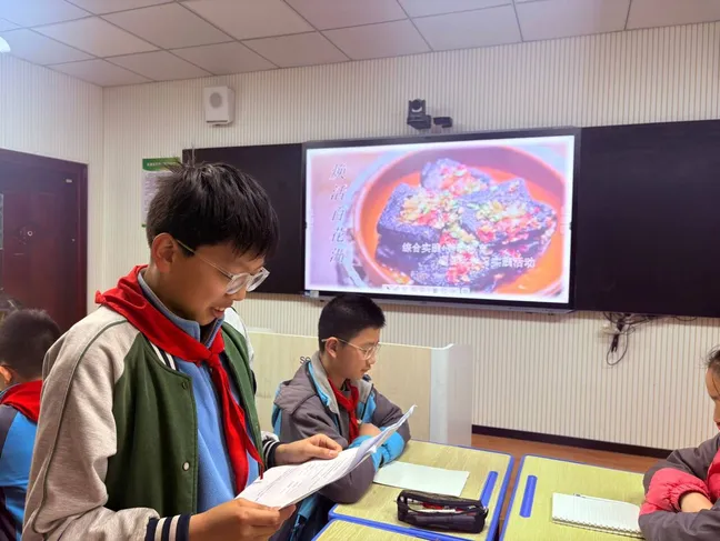 各小组开展课堂交流复盘,结合调研数据梳理店铺差异,提炼网红小吃店流量要素,分析百花洲小袁臭豆腐人气不足的原因,为百花洲周边特色小吃、景点发展建言献策。学校还结合劳动学科要求,组织学生讨论臭豆腐制作要点,引导学生课后自主尝试家庭版制作,推动“探究—总结—实践”学习闭环落地。