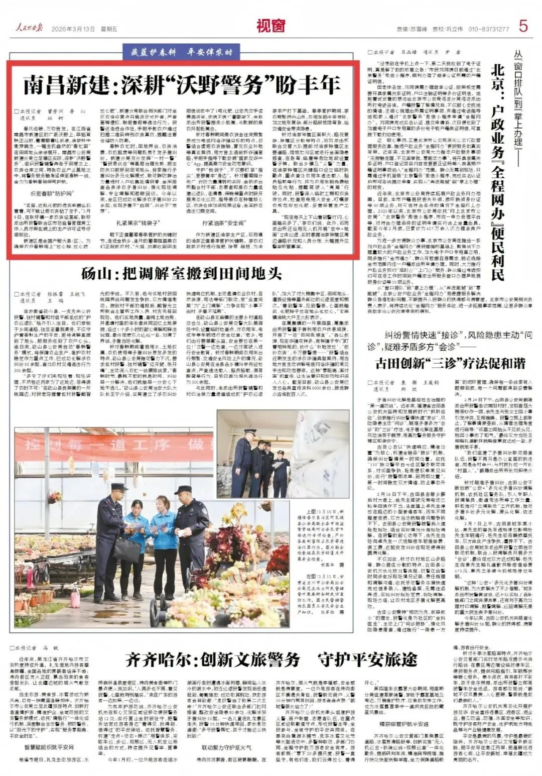 春风送暖,万物竞发。在江西省南昌市新建区的广袤沃野上,早稻育秧正当时,葡萄藤蔓吐新绿,油茶林中嫩芽萌发,一幅生机盎然的“春忙图”在田间地头徐徐展开。南昌市公安局新建分局立足辖区实际,深耕“沃野警务”,组织民警辅警奔走于田埂之上、农资仓库之间、特色农业产业基地之中,将警务服务触角延伸至春耕一线,全力为春耕春种保驾护航。