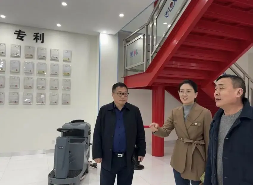 考察团一行在胡江南董事长的陪同下,实地参观了徽商企业的办公环境、生产车间及产品展示区。胡江南详细介绍了公司的发展历程、主营业务板块、核心技术优势以及近年来在市场拓展方面取得的成果。作为专注于环保科技与特种机械领域的综合性企业,南昌旭洁环保在技术研发和设备创新方面展现出的实力给考察团留下了深刻印象。