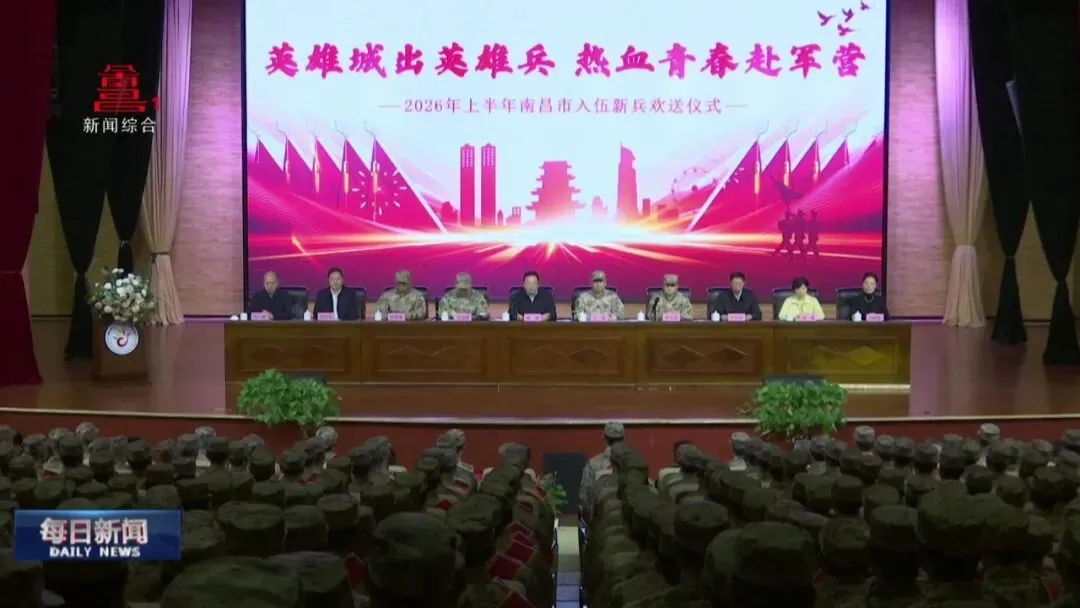 今天上午,2026年上半年南昌市入伍新兵欢送仪式举行。市委常委、常务副市长赵捷,市委常委、南昌警备区大校司令员王凯,南昌警备区大校政委王余根,南昌警备区大校副司令员彭志伍出席。
