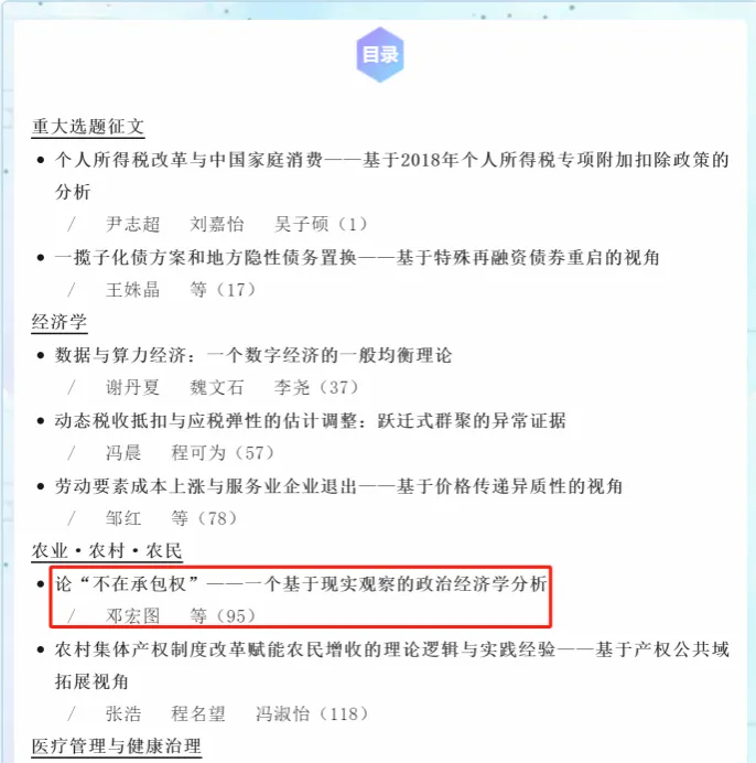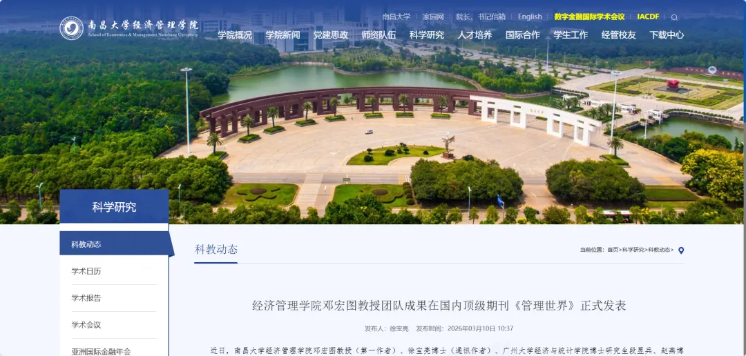 2026年3月,由南昌大学经济管理学院邓宏图教授(第一作者)、徐宝亮博士(通讯作者)领衔,联合广州大学段昱兵、赵燕博士以及中国社会科学院马太超博士共同完成的学术论文——《“论不在承包权”——一个基于现实观察的政治经济学分析》,正式刊发于国内管理学界公认的“天花板”期刊《管理世界》2026年第3期。这一成果不仅标志着南昌大学在构建中国经济学自主知识体系上取得了里程碑式的突破,更为当前国家城乡融合发展战略提供了极具深度的理论支撑与政策启示。