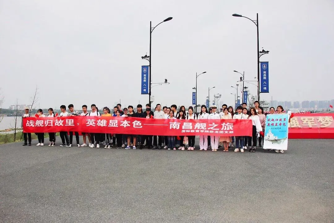 时值人民海军成立70周年之际,国际教育学院卧龙团支部组织开展“战舰归故里,英雄显本色——南昌舰之旅”主题实践教育活动。活动期间,卧龙团支部全体成员在两位讲解员的带领下参观中国海军163导弹驱逐舰 - 南昌舰。讲解员生动的语言以及在南昌舰上的实地参观,让我们深切地体会到铸魂励志的军人情怀。随后又重温了《水下除夕夜》的小品,让我们体味不一样的军旅生活。