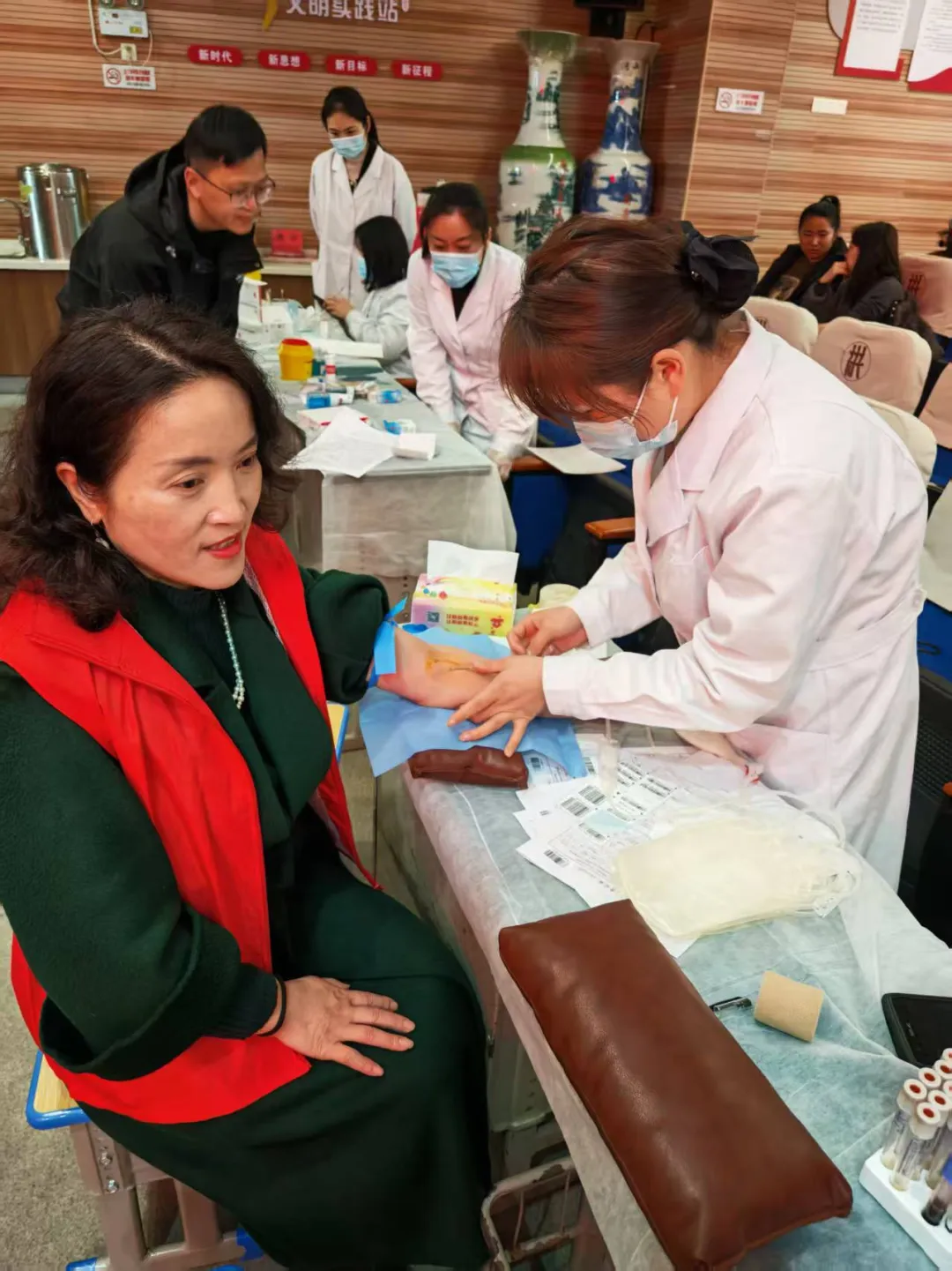 为弘扬无私奉献精神,践行育人初心使命,我校组织教师参与无偿献血活动。活动现场,老师们有序登记、体检、献血,用实际行动诠释着为人师表的责任与大爱。
