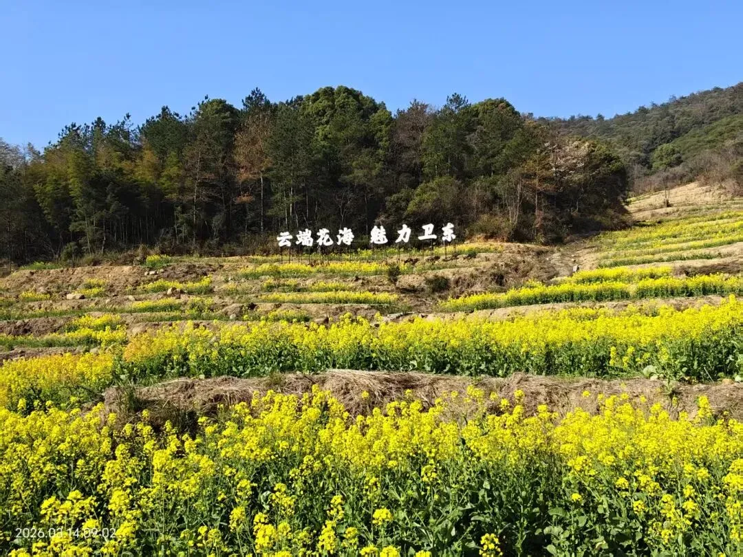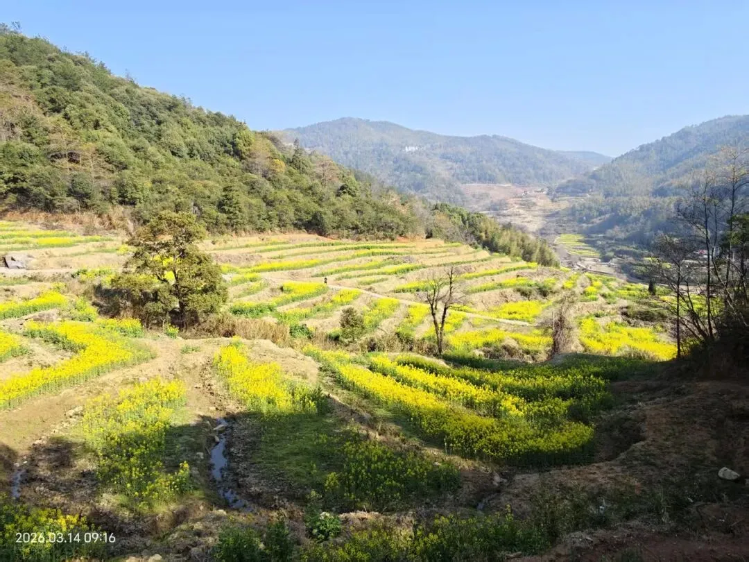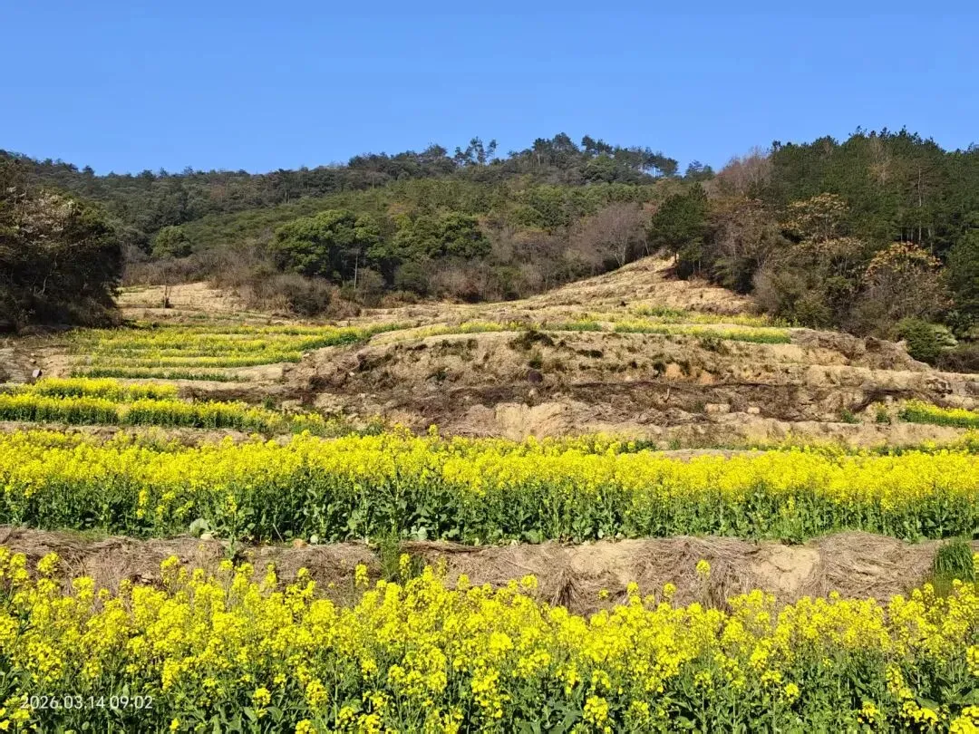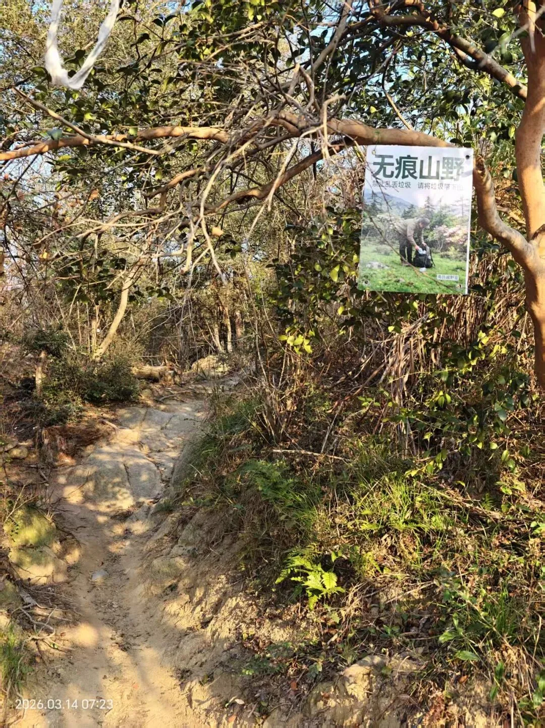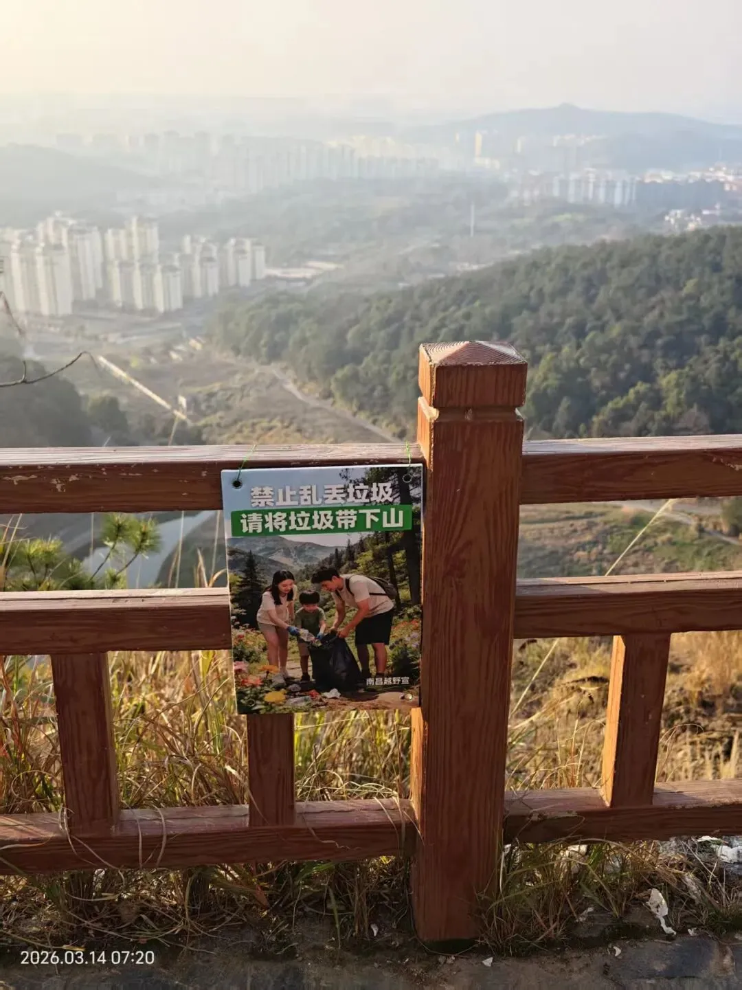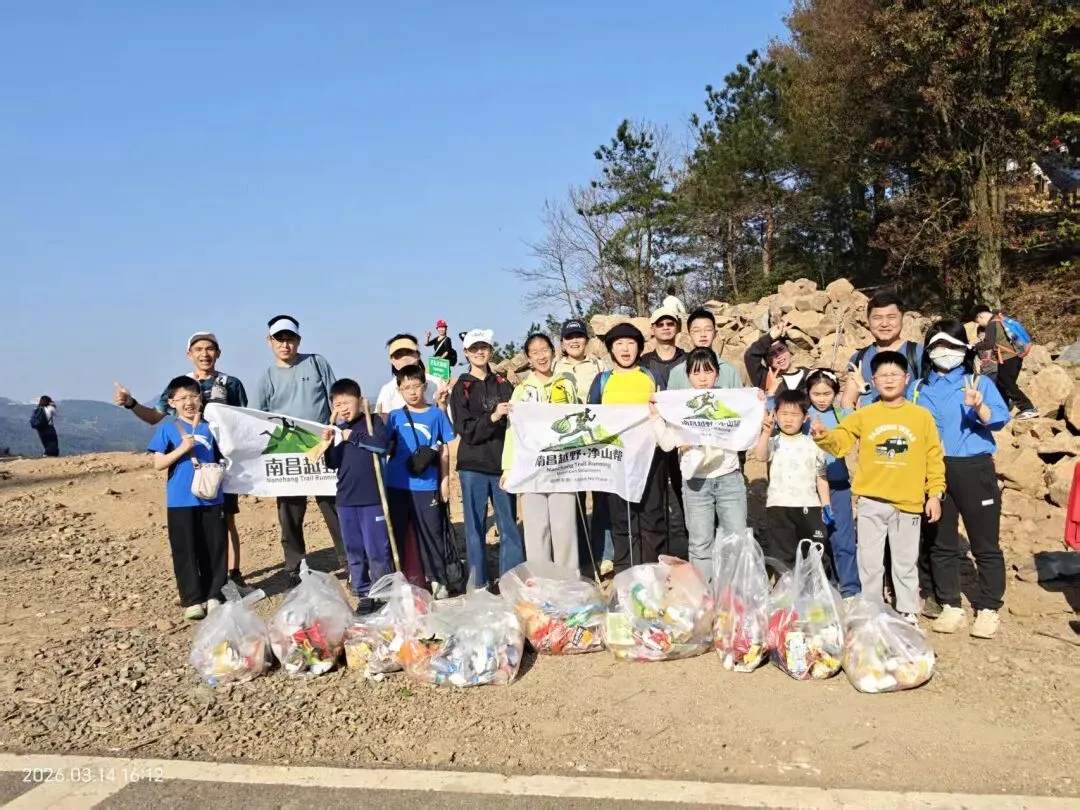 一大早,我们南昌越野·净山帮群里就很热闹,有玉华山、刘子俊、华东等出发东梅岭净山的;有农民在挂环保宣传牌,给下午的亲子徒步赏油菜花探路;还有温侠带的亲子团在东梅岭净山。群里好不热闹,大家净山热情高涨。“南昌越野公益净山活动”2026年第11期看油菜花团队一波三折,本来计划看牛岭梯田油菜花,担心堵车,改为卫东梯田油菜花,十一点发现卫东也堵车,再调整起点到大罗村。一点半到起点,萧峰大道已经是车来车往,热闹非凡。今天的十个小朋友净山热情高涨,根本无暇去看油菜花,大部分小朋友已经不是第一次净山捡垃圾了。那就卫东大环线净山走起。一路上徒步的人不少,沿途垃圾也被各位小朋友争先恐后一网打尽。还碰到另一队小朋友也来净山。沿新五坡向上,经过两次休整,终于到达山脊最高处,俯瞰油菜花错落有致金黄耀眼。下到山口,近十袋垃圾归拢到垃圾箱,小朋友尽情享受劳动后的小吃冰棍。然后继续沿徒步环线下到油菜花地和卫东村,结束今天的净山活动。
