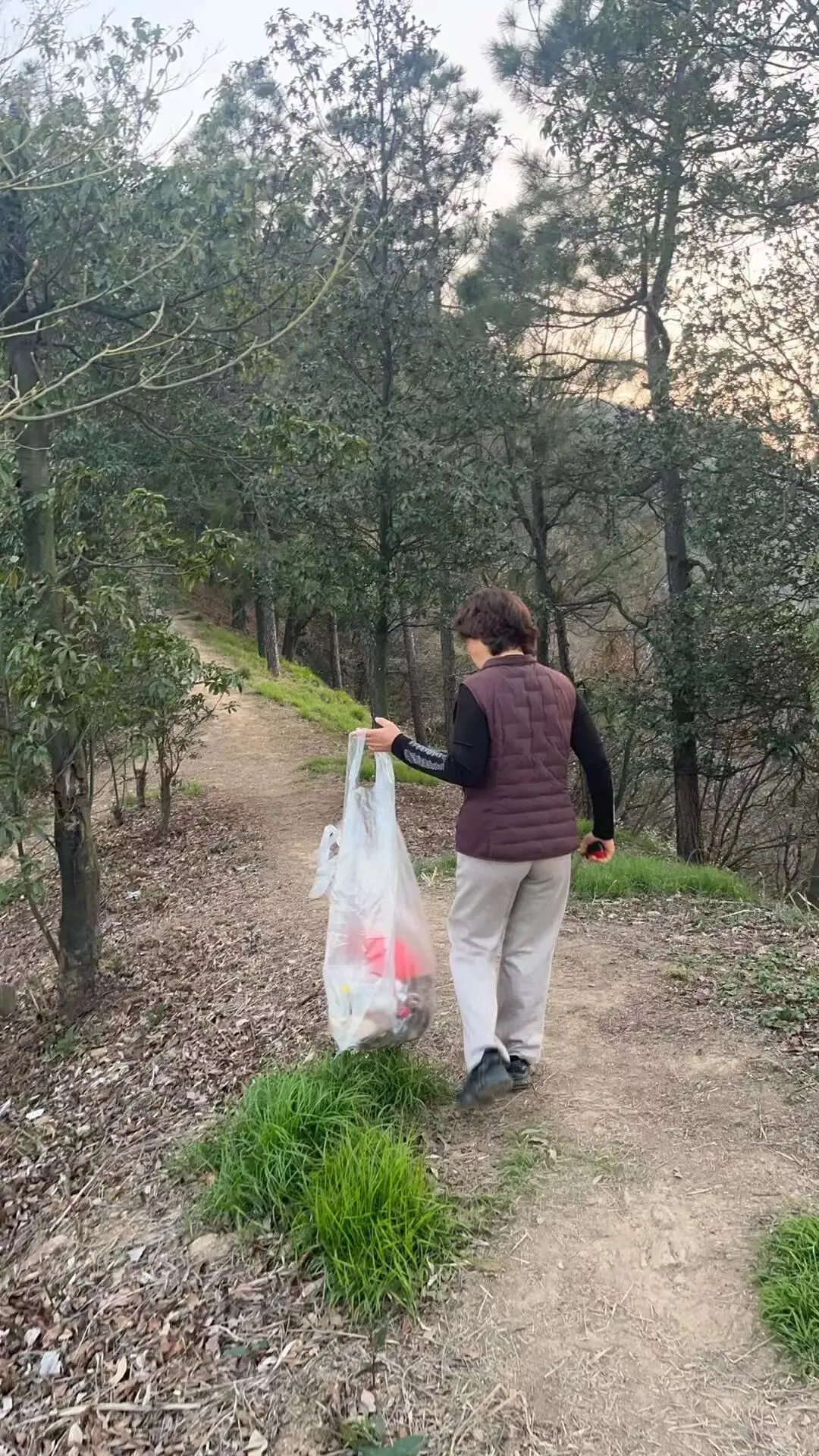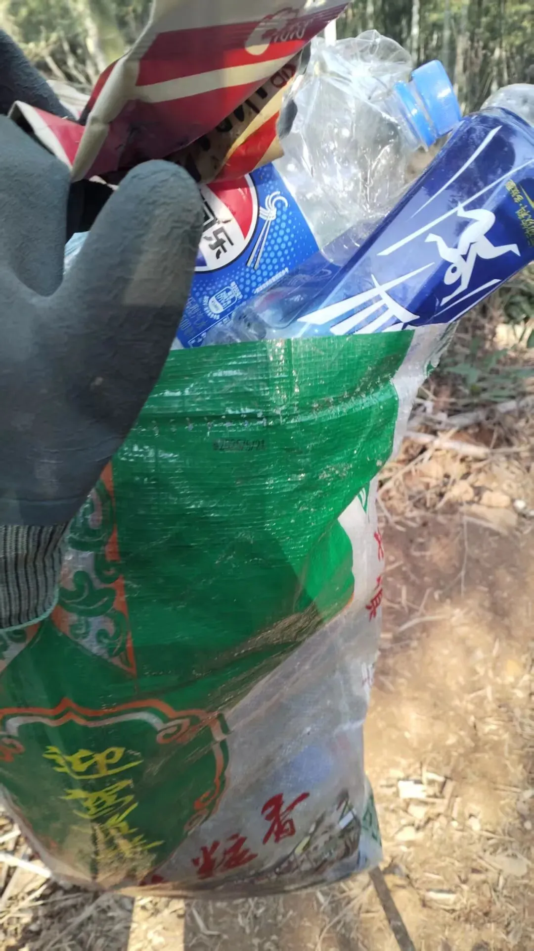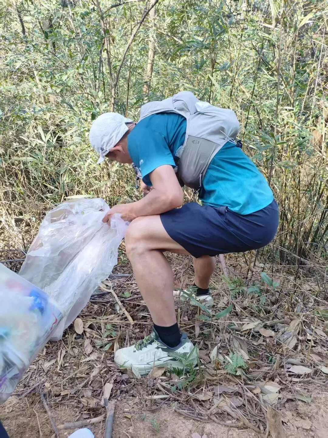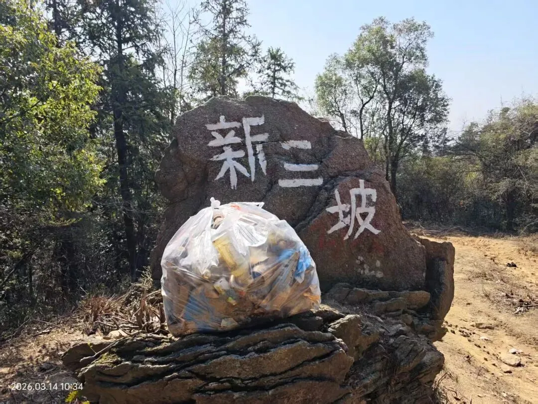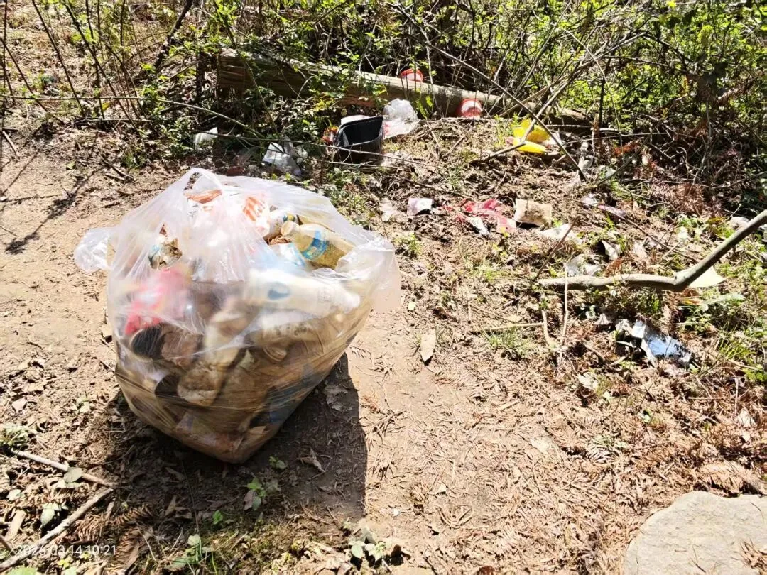 东哥上午的净山成果,0号线到情人湖,两大一小袋的垃圾:子俊在巡山中:“今天安峰尖 九曲十八岭一带又丢了很多新垃圾”农民发现新情况:新三坡有好多垃圾