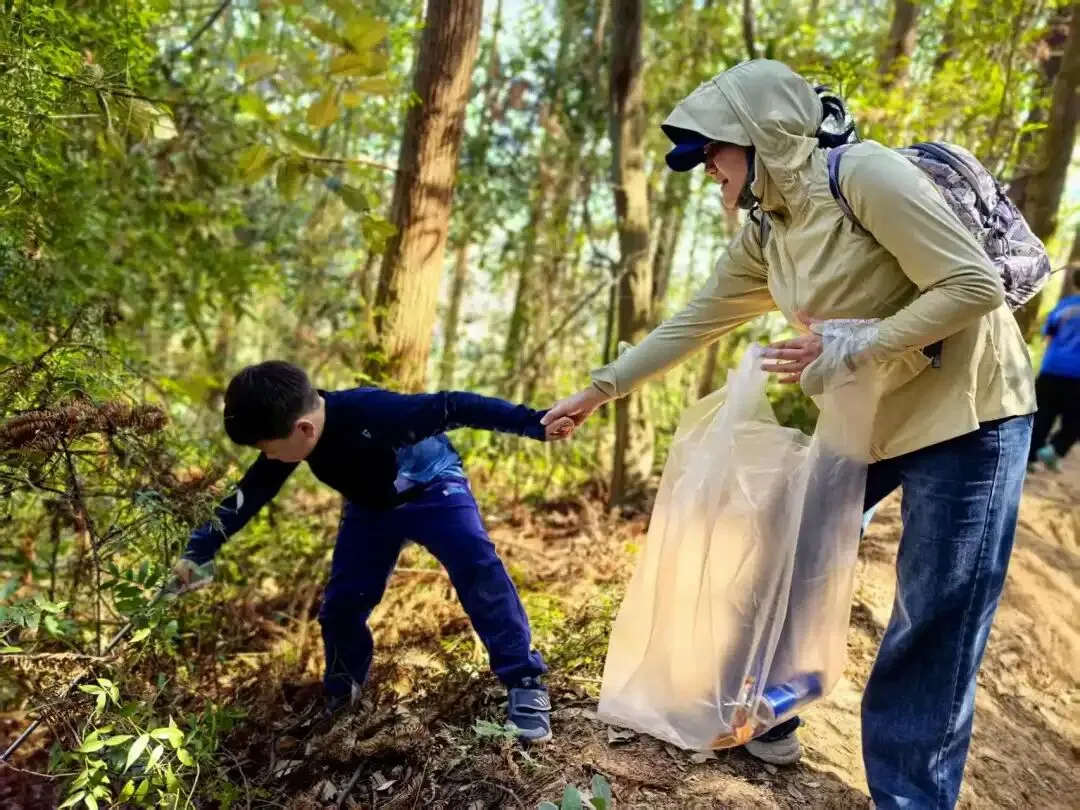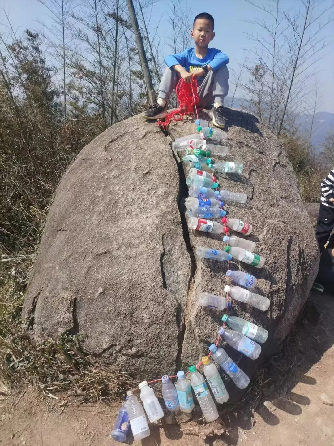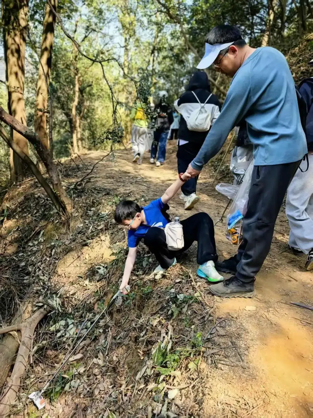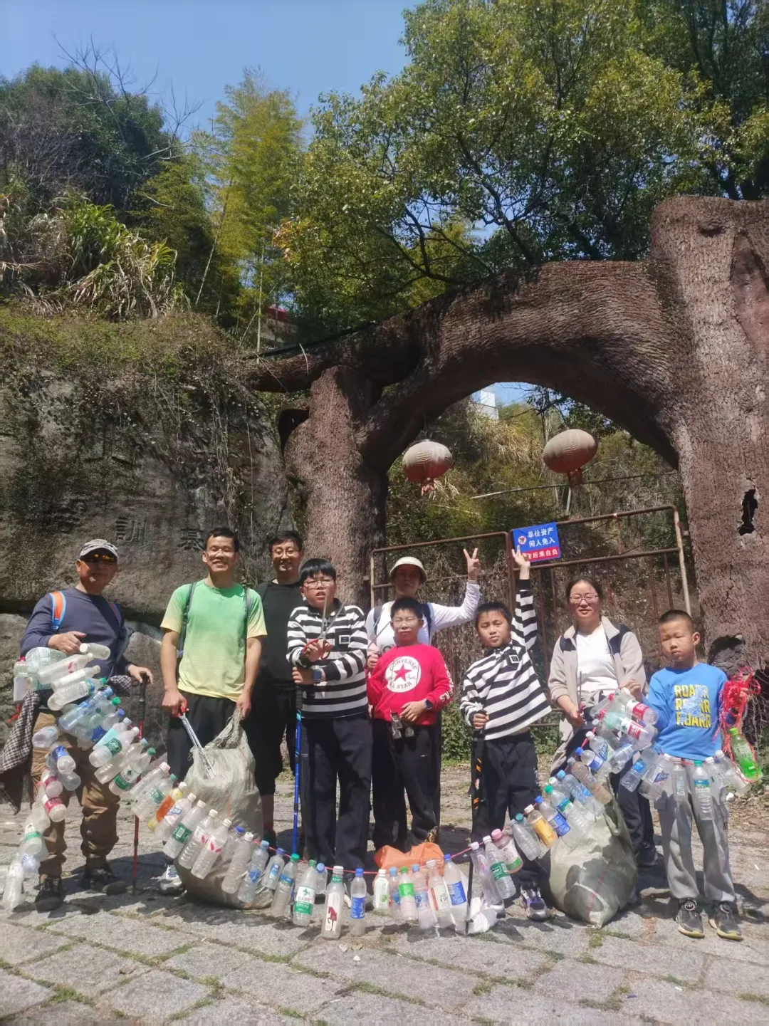 温侠:“今天东梅岭亲子徒步净山:4组家庭走完全程13公里(5个小时),拾获2袋垃圾和约100个瓶子(卖了5.5元)。”