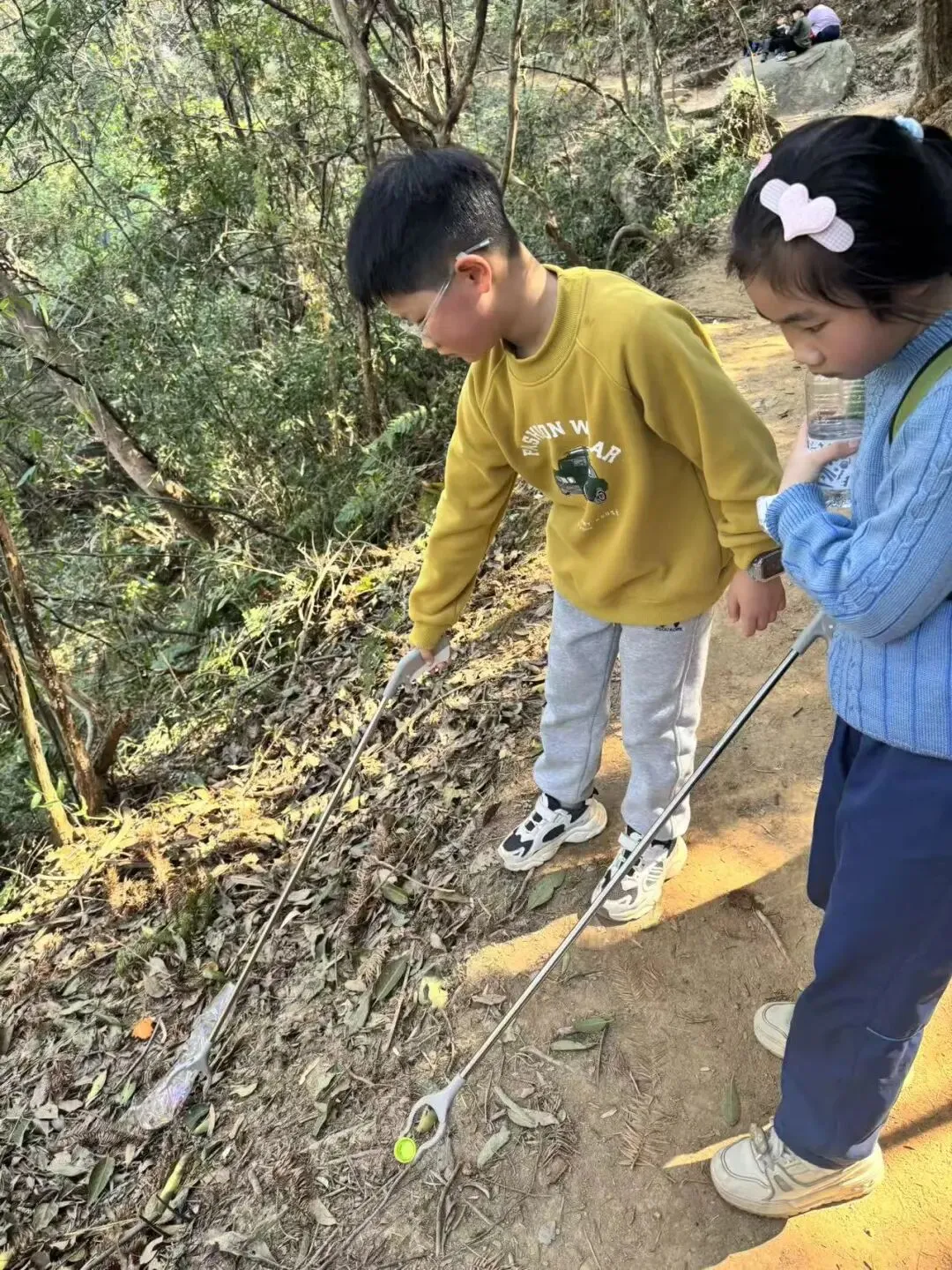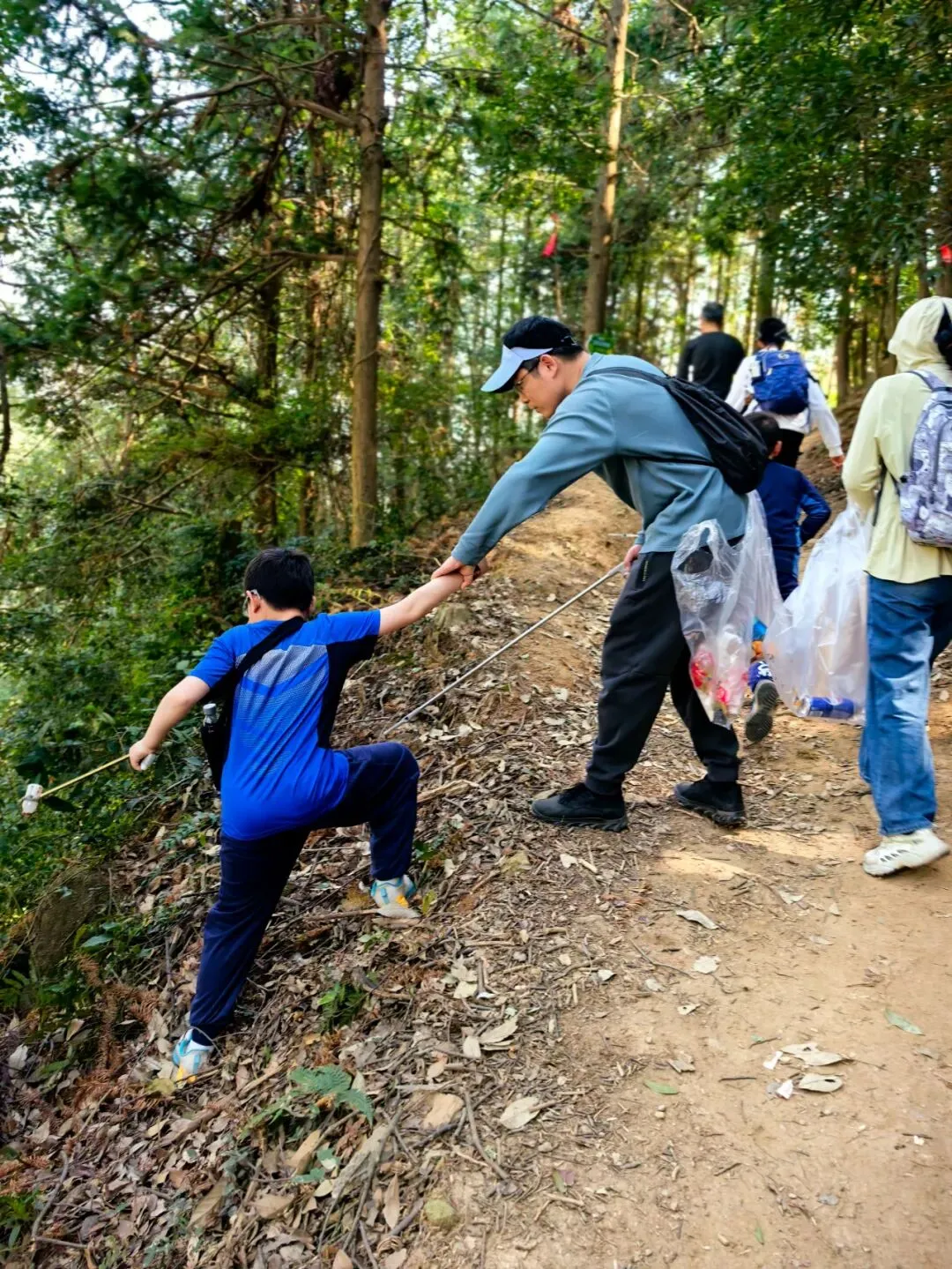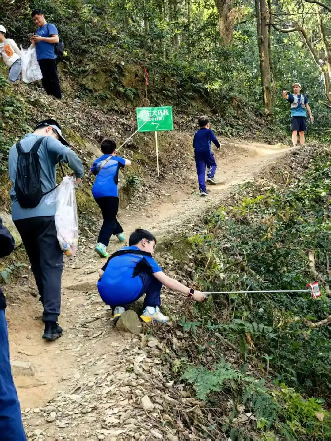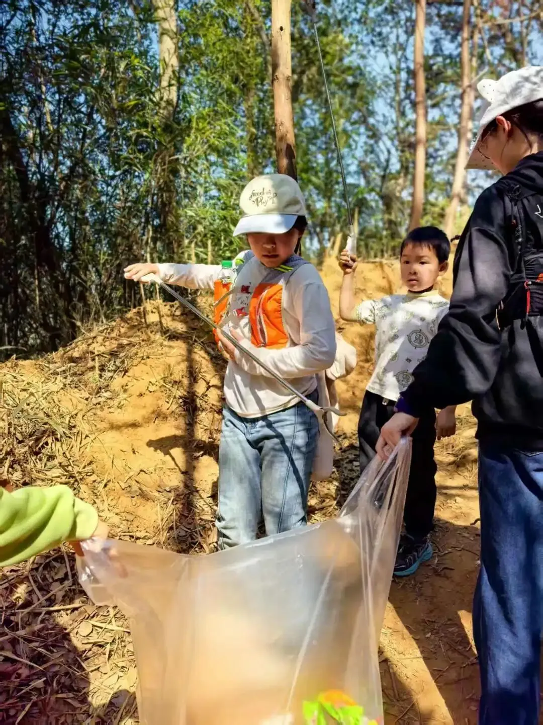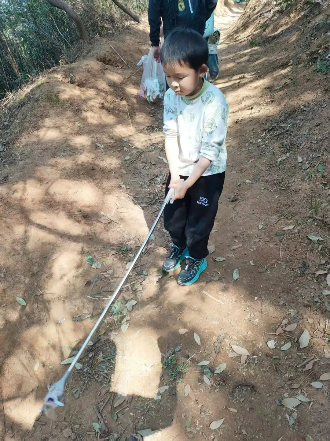 温侠:“今天东梅岭亲子徒步净山:4组家庭走完全程13公里(5个小时),拾获2袋垃圾和约100个瓶子(卖了5.5元)。”