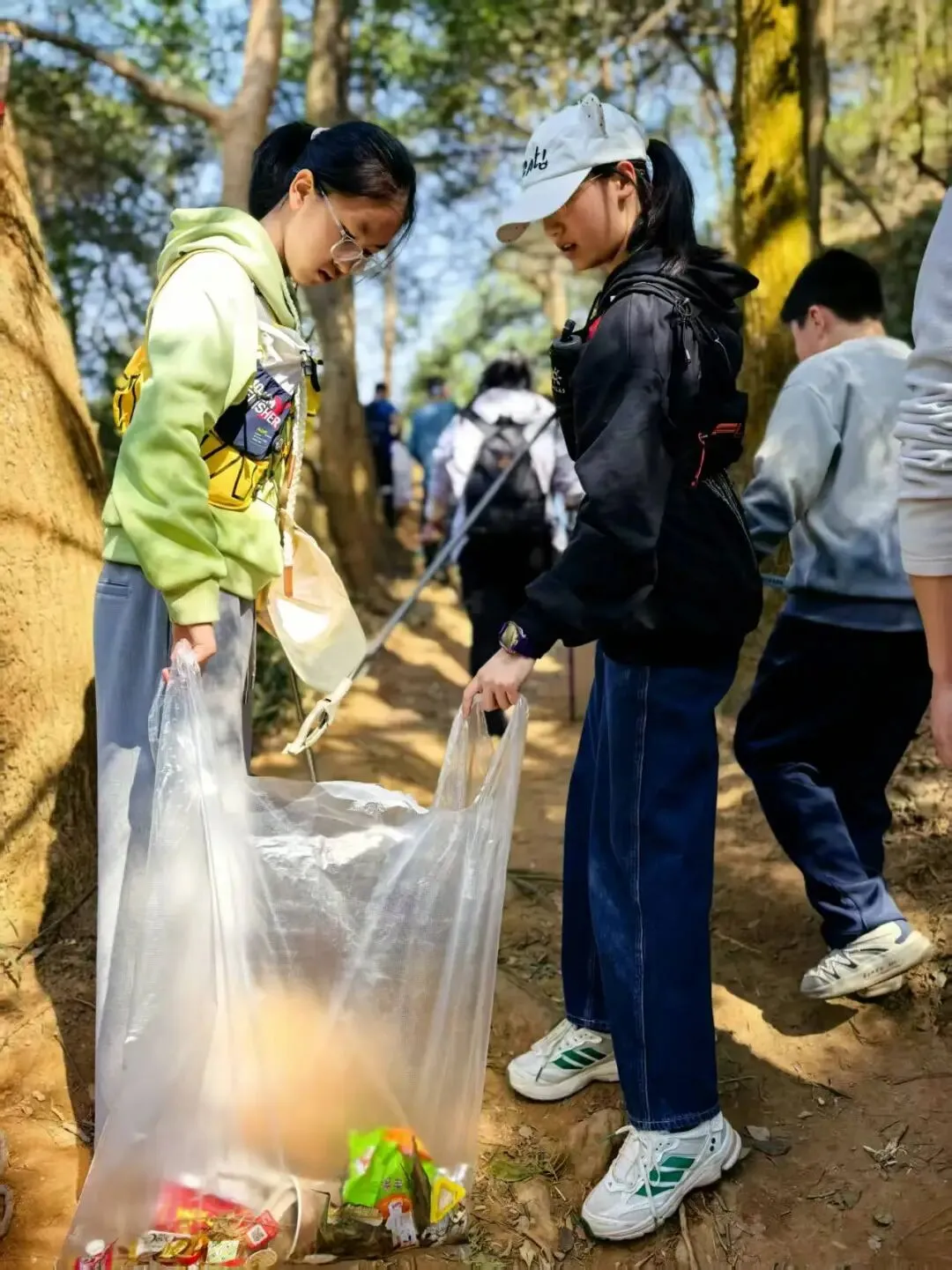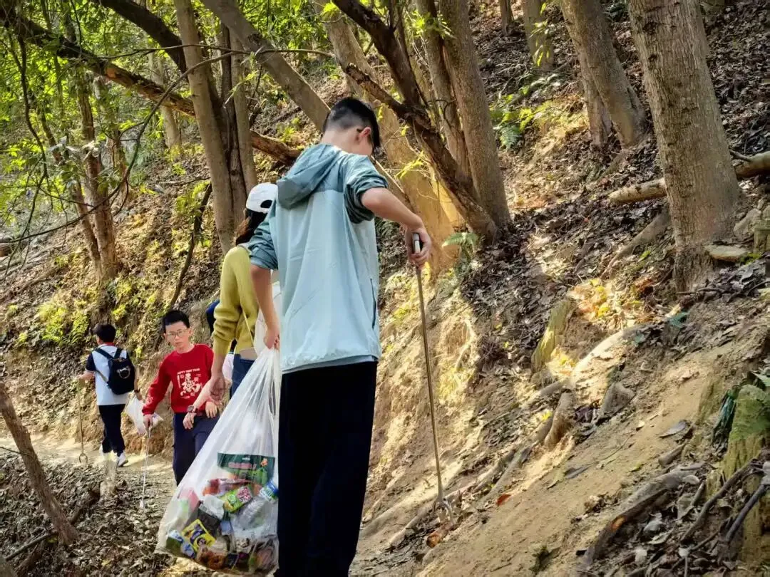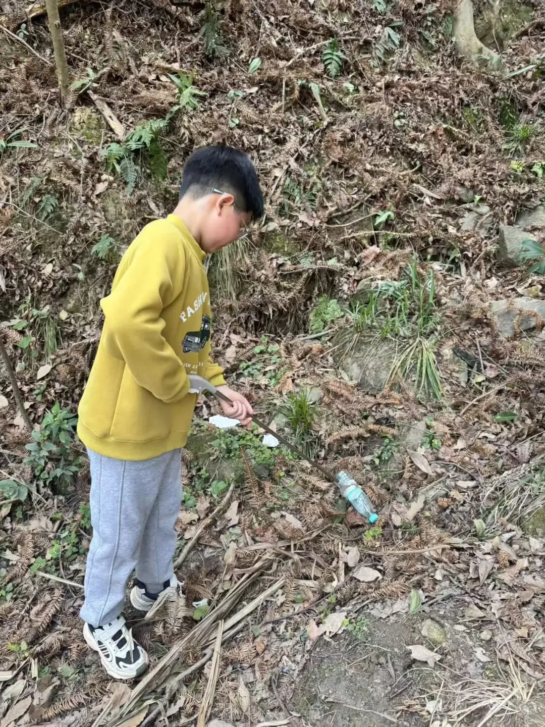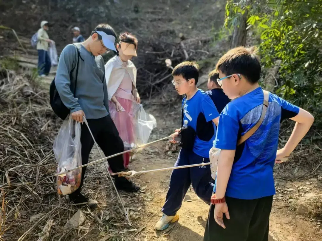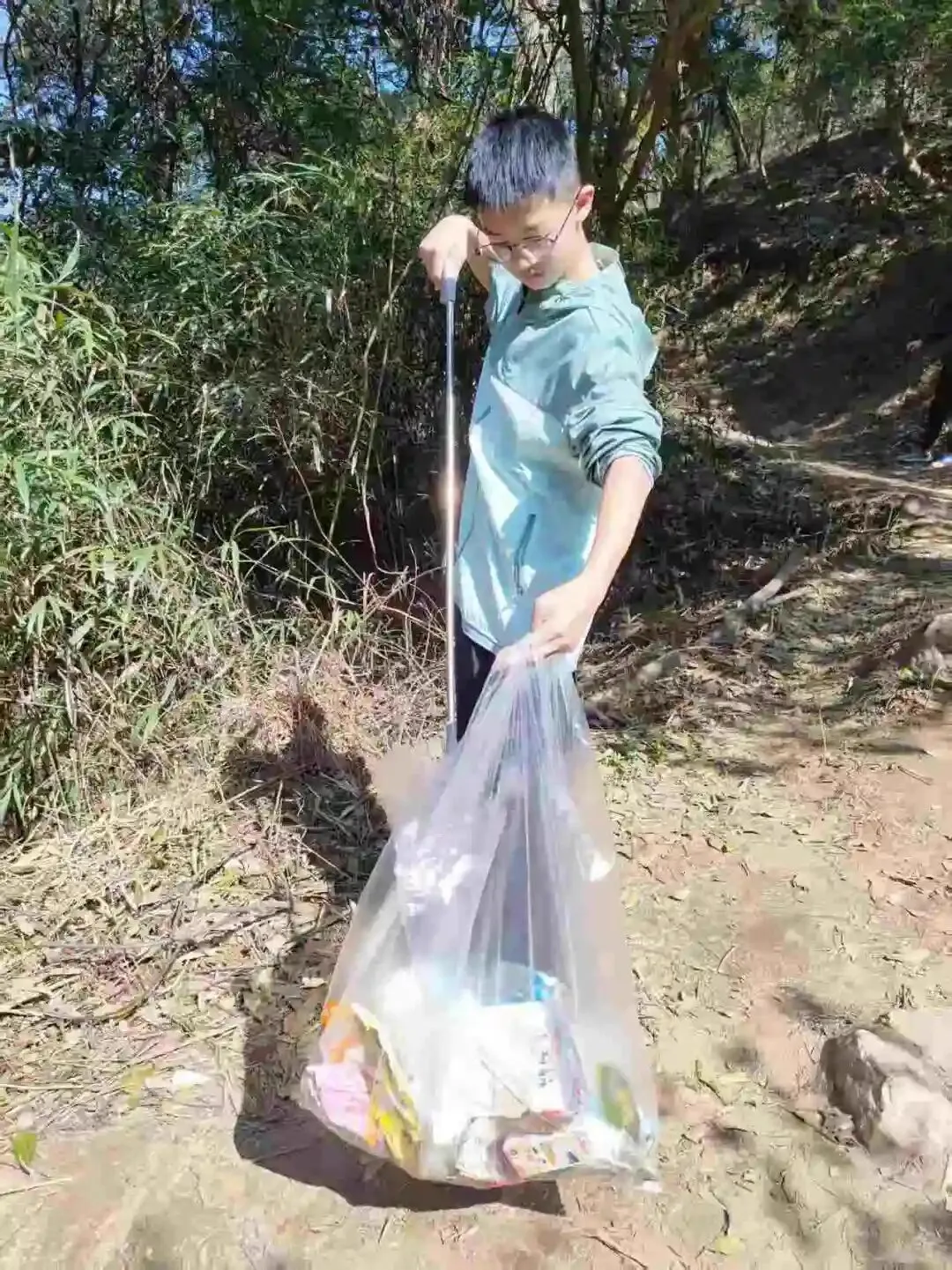 温侠:“今天东梅岭亲子徒步净山:4组家庭走完全程13公里(5个小时),拾获2袋垃圾和约100个瓶子(卖了5.5元)。”