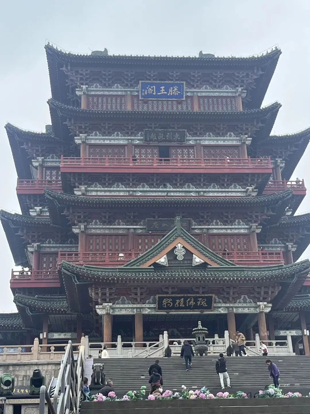 酒粉饭饱过后想起还有公众号没写,遂定了闹钟等准点爬起来搓字,写完定时发布,便沉沉的睡去了,待醒来已是下午一点多,灰蒙蒙的天空似是要下雨,简单收拾了一下就步行前往滕王阁了(直线距离只有400米)幸好等我参观完出来才下起雨来,也是挺幸运的,在滕王阁园区看见许多小姐姐着汉服参观,很是美腻,游览途中旁听了几个导游的讲解,还挺有意思,感触颇深的是江西历史上竟然出了这么多名人,大概70多位其中有很多耳熟能祥的,比如陶渊明(九江人)、欧阳修(吉安人)、王安石(抚州人)、黄庭坚(九江人)、文天祥(吉安人)等等不胜枚举。有一点想吐槽一下,游览完在去出口的路上布满了诸多商品档口,商业化气息太重,甚至影响了观感。