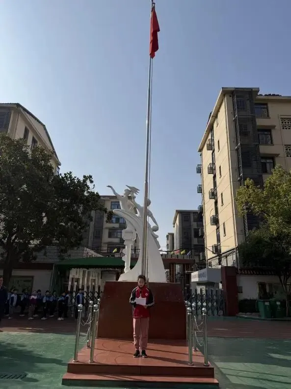 周一清晨,全体师生整齐列队于操场,在庄严的升旗仪式后,举行植树节专题国旗下讲话。