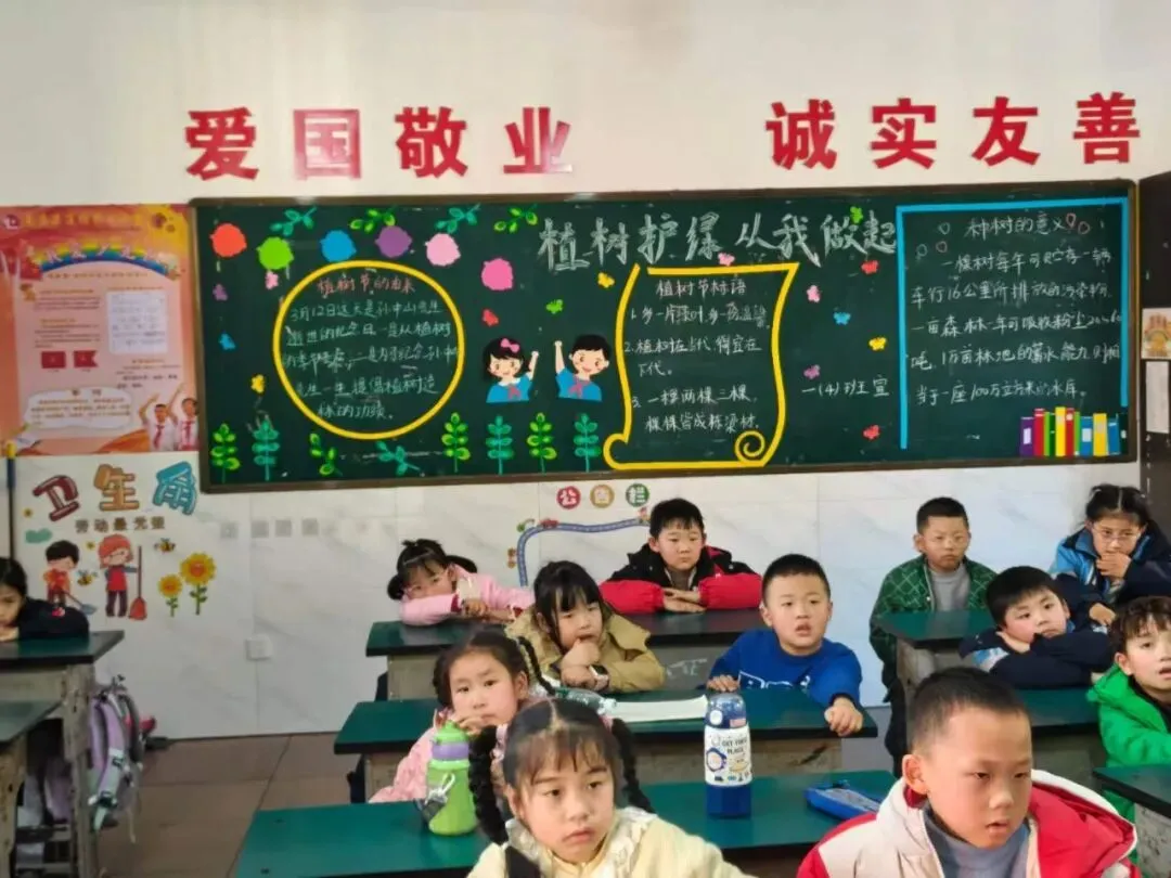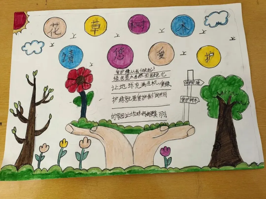 播种一抹绿,收获满园春。在植树节里,我们争当绿色小卫士,用画笔描绘春天。愿小树与我们一同成长,让绿色永远陪伴美丽校园。