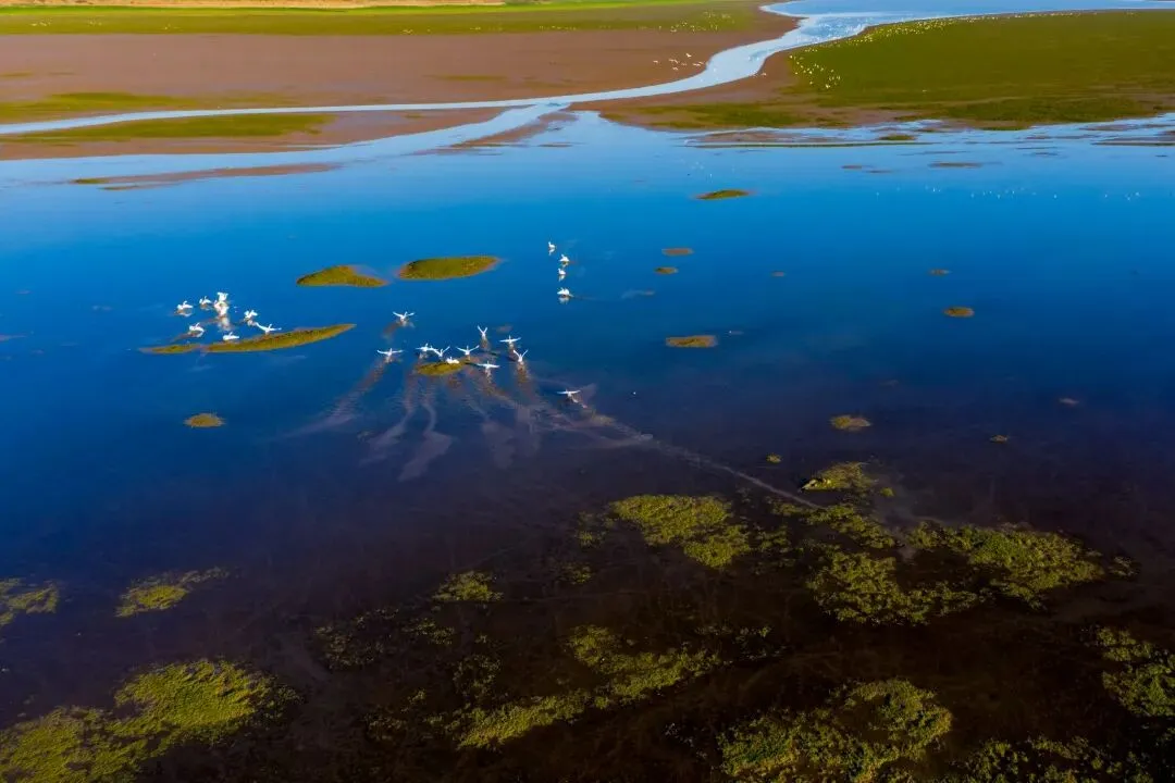 鄱阳湖离城不远,古来“落雁啼鹭”都从这片水面起飞,候鸟季一片白。