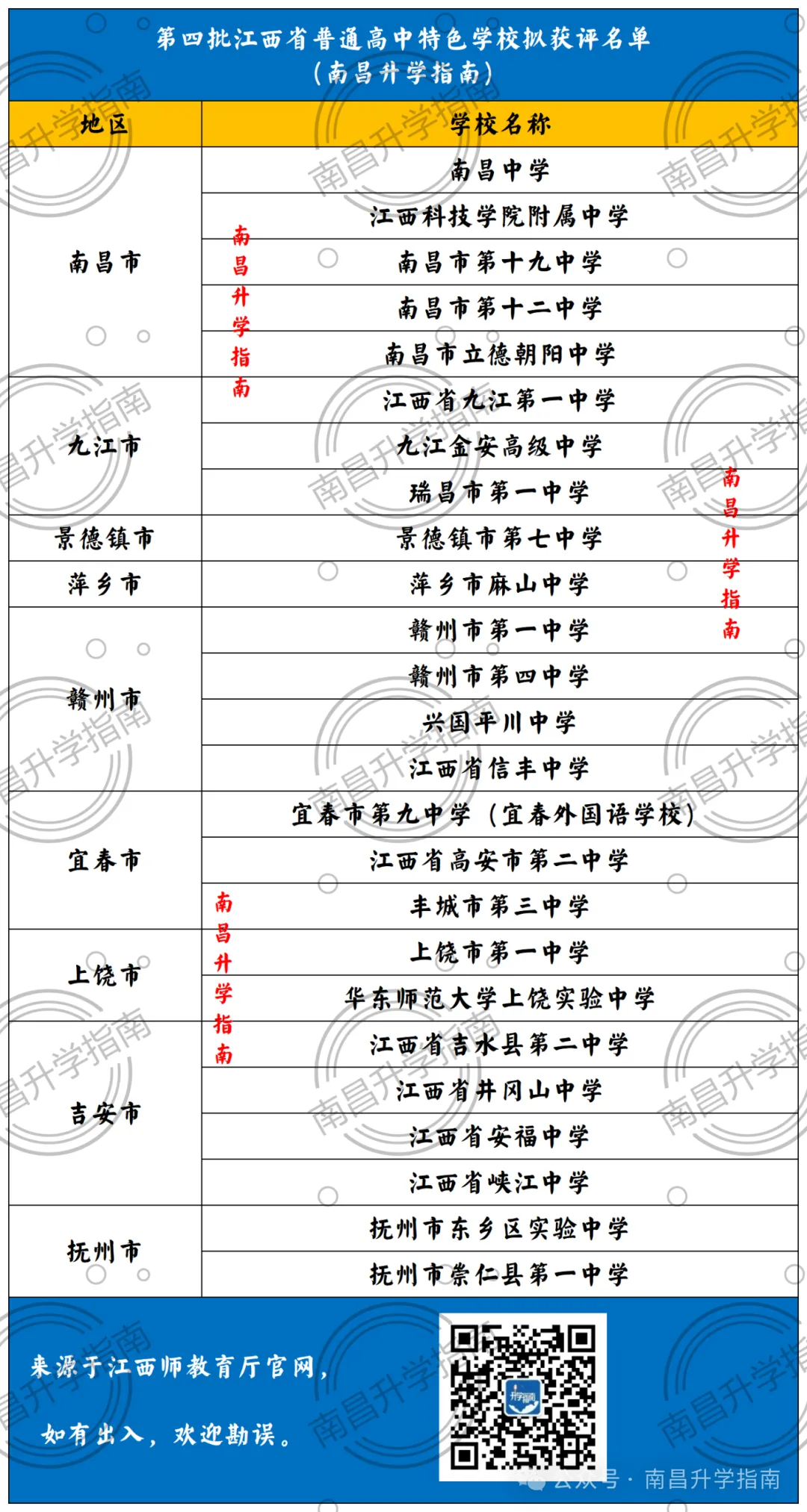 经组织专家评审,拟将办学特色明显的25所普通高中列为第四批江西省普通高中特色学校。现予以公示。