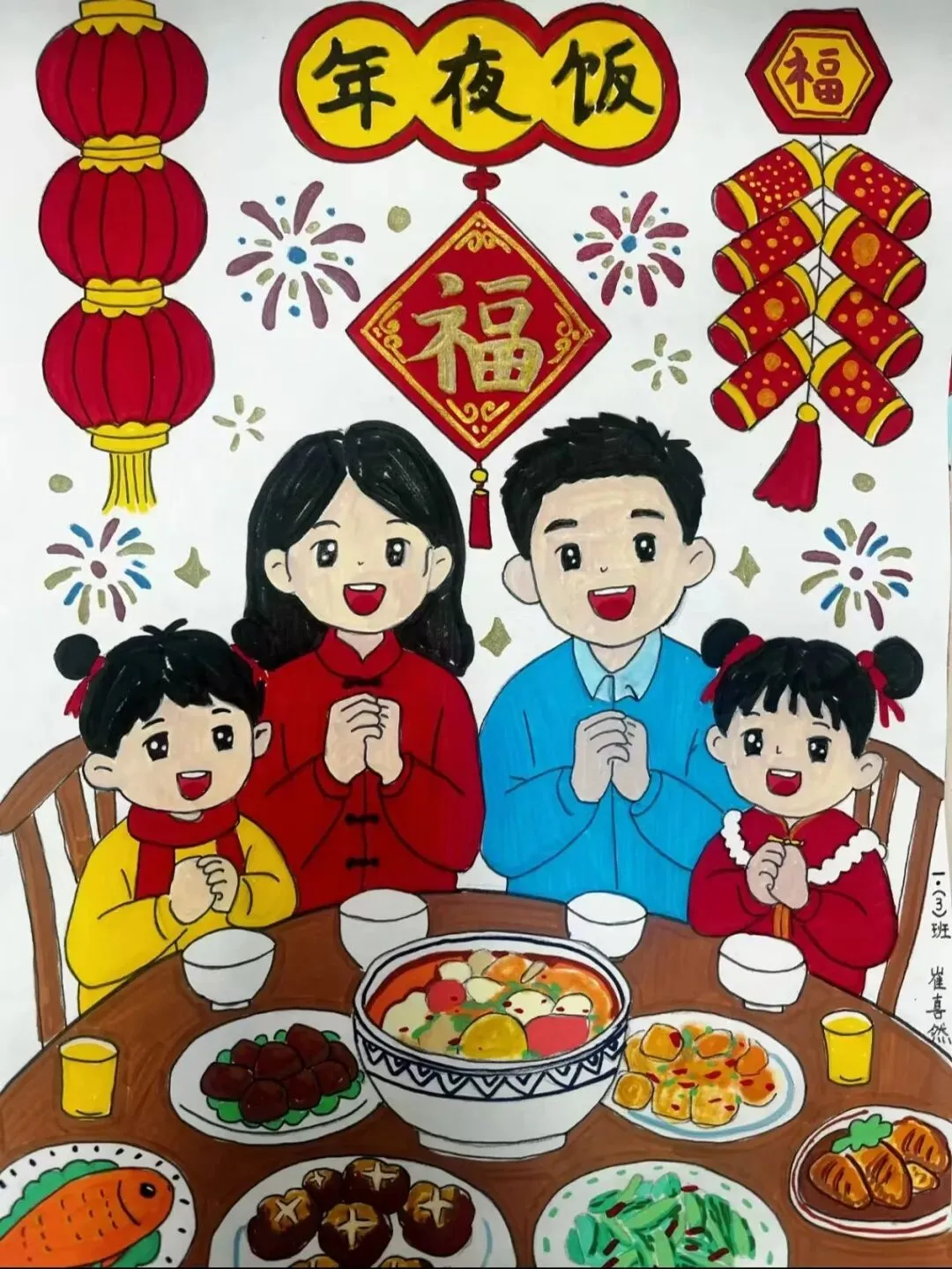 对于一年级的小萌娃来说,春节最重要的时刻莫过于一家人围坐在一起的那顿年夜饭。