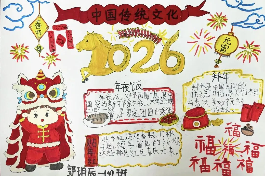 更重要的是,他们用文字记录下这一切。他们用笔尖捕捉新春的瞬间,用图文并茂的方式,让我们看到了传统民俗在新时代少年心中的模样。