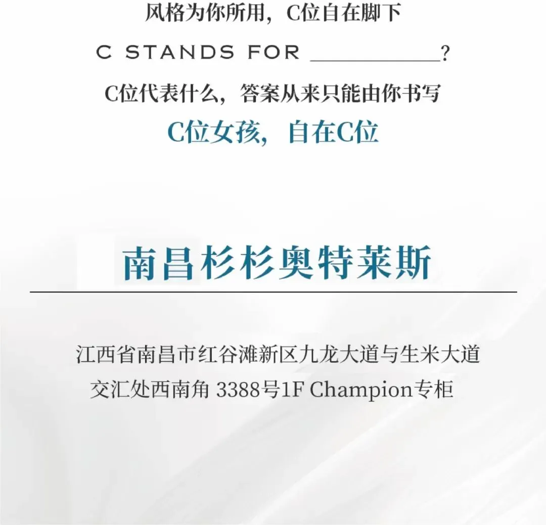 【南昌杉杉奥莱】Champion丨C位不是站位,是自由态度!