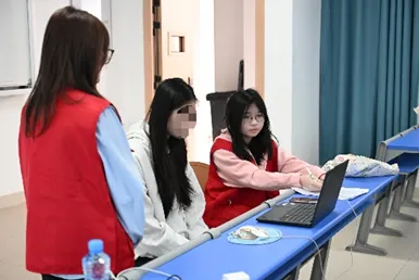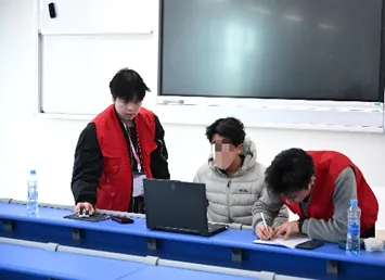 测评现场组织有序,每间测评教室配备一名AI测评员、一名数据记录员和一名秩序员,全体工作人员均严格遵循信息保密原则。同学们在心理委员引导下依次入场,仅需静坐片刻,AI系统即可完成对其心理状态、性格特征与情绪状态的科学分析,全程无感、安全便捷。