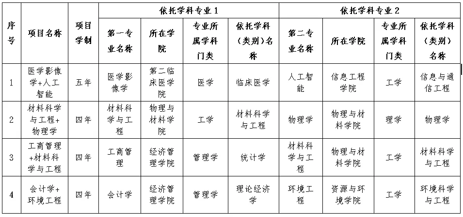 4个双学士学位复合型人才培养项目,涵盖医工交叉、理工融合等跨学科方向,将在2026年通过高考招生。