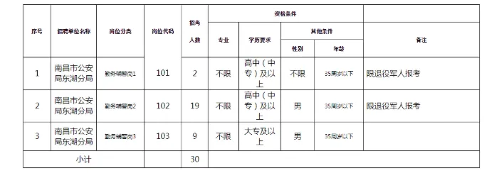 (二)招聘岗位:此次员额制辅警招聘共设3个岗位,详见《2026年南昌市公安局东湖分局公开招聘警务辅助人员岗位表》(附件1)。